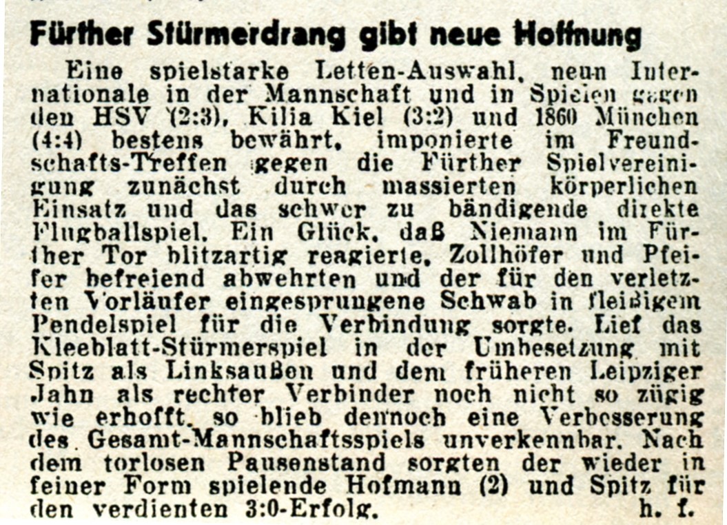 Ausschnitt aus den Fürther Nachrichten vom 3.10.1946 über´s "Kleeblatt"