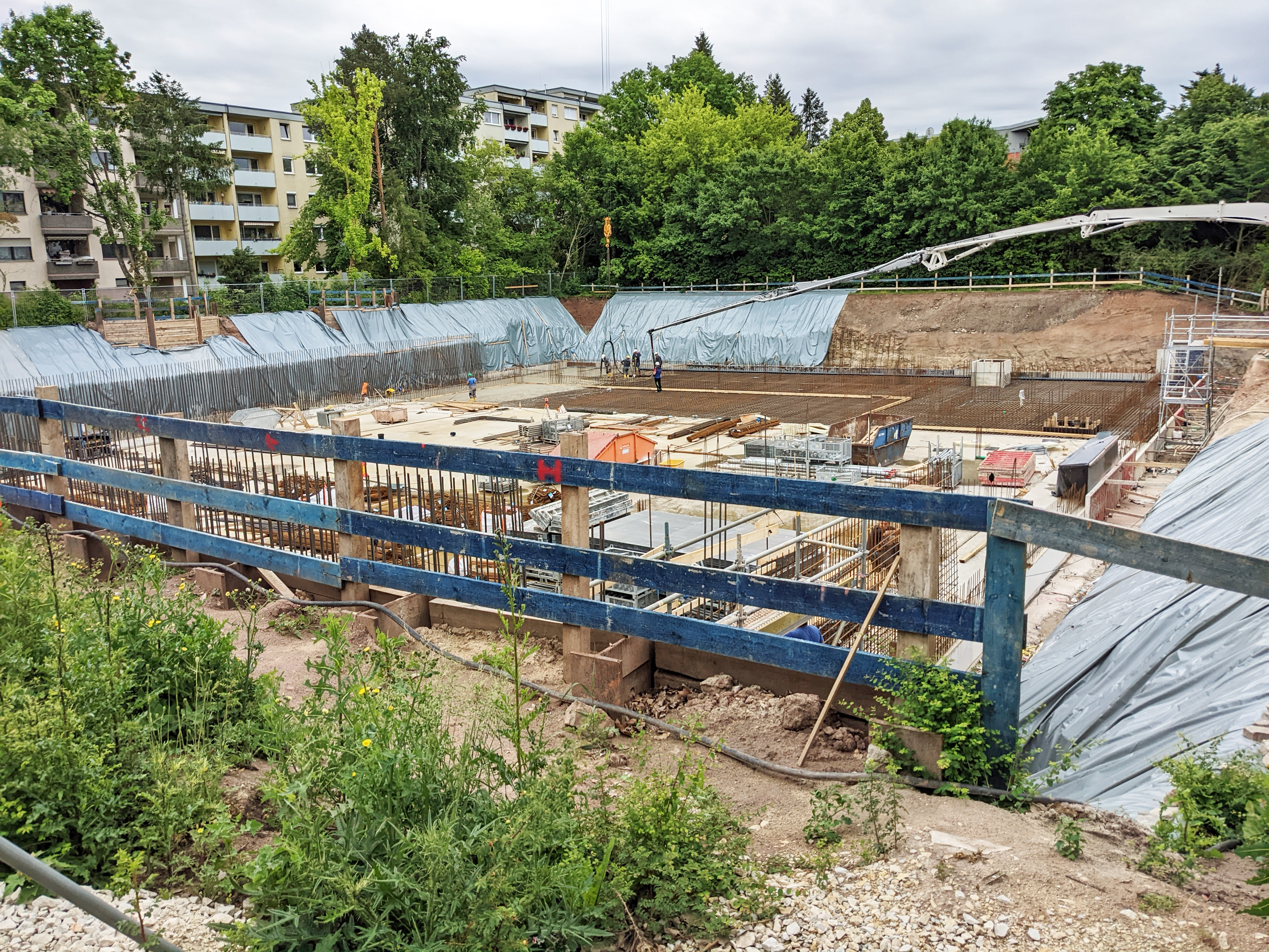| Beschreibung | Blick von der Seeackerstraße auf den Neubau der Dreifachsporthalle Seeackerschule im Juni 2022 | ||