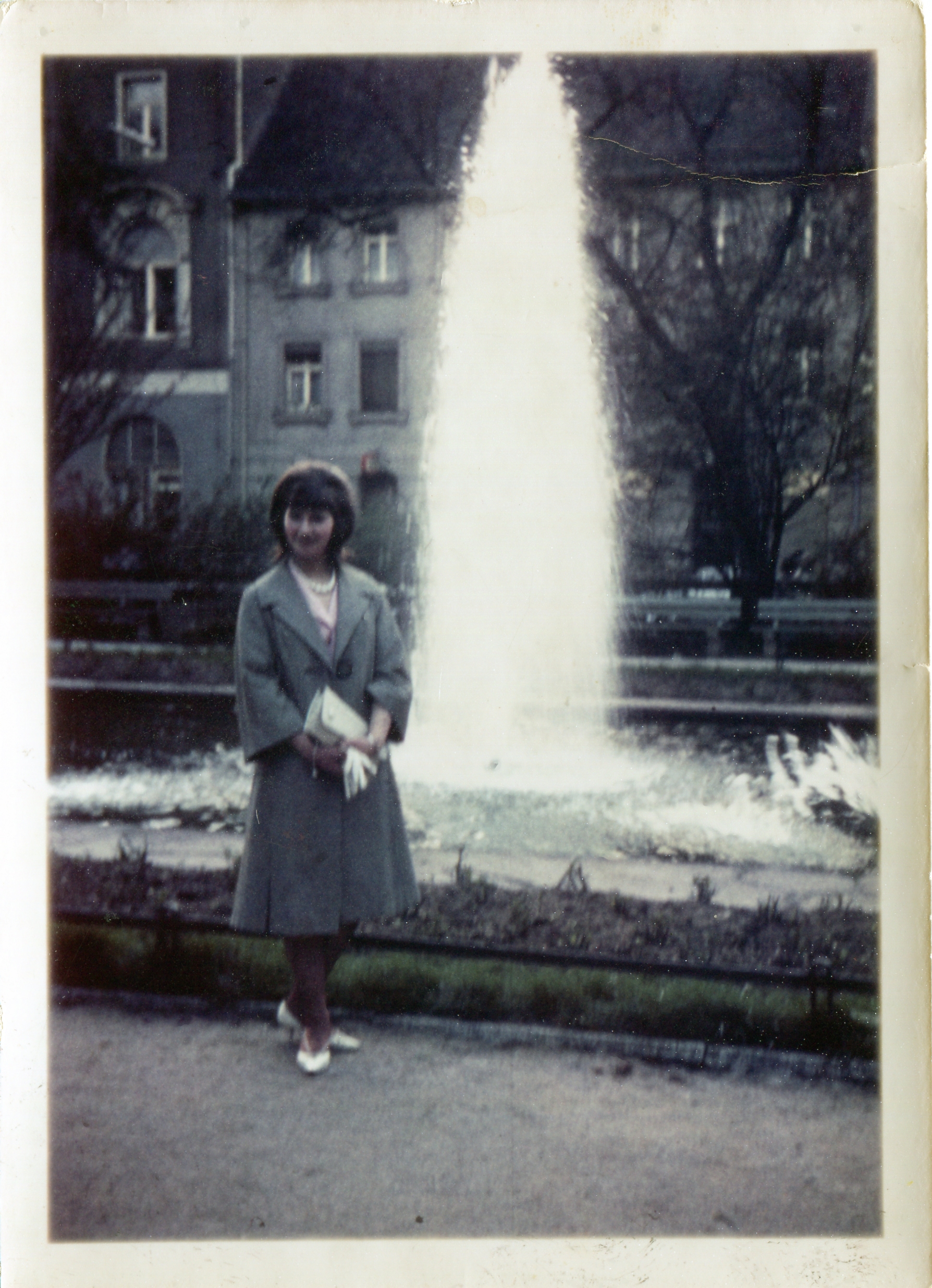 Aufnahme von 1964 vor dem Springbrunnen in der Dr.-Konrad-Adenauer-Anlage im Hintergrund das (ehemalige) Parkhotel und daneben Friedrichstraße 6