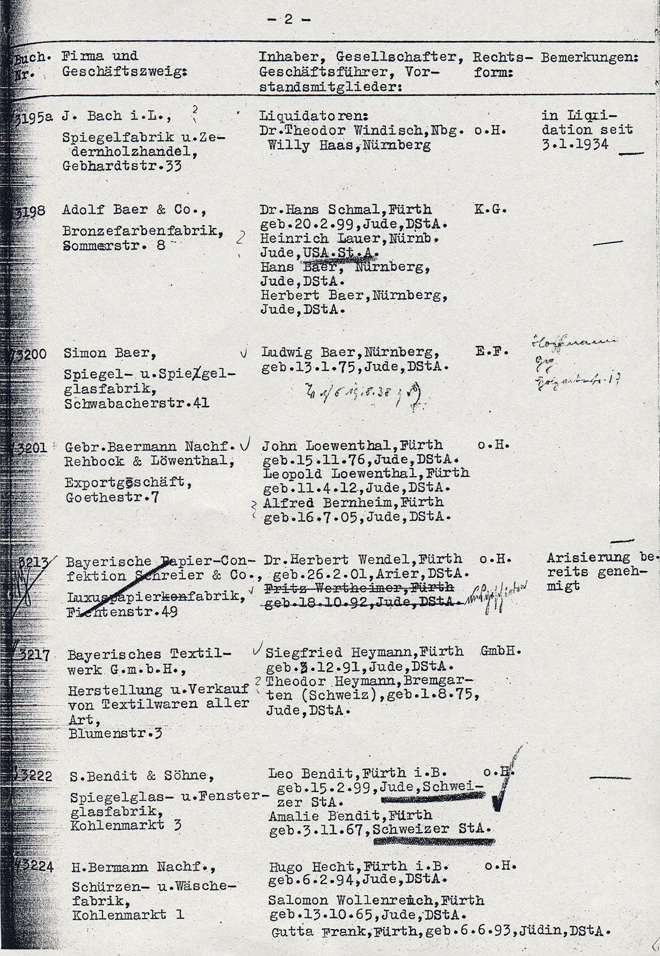 | Dateiinfo (Bild-Unterschrift und Info-Box, automatisch erstellt) | Liste von Gewerbebetrieben mit jüdischen Eigentümern, Stand 25. August 1938, S. 2 von 26 Urheber: NSDAP Fürth<br><br>Lizenz: CC BY-SA 3.0 | ||