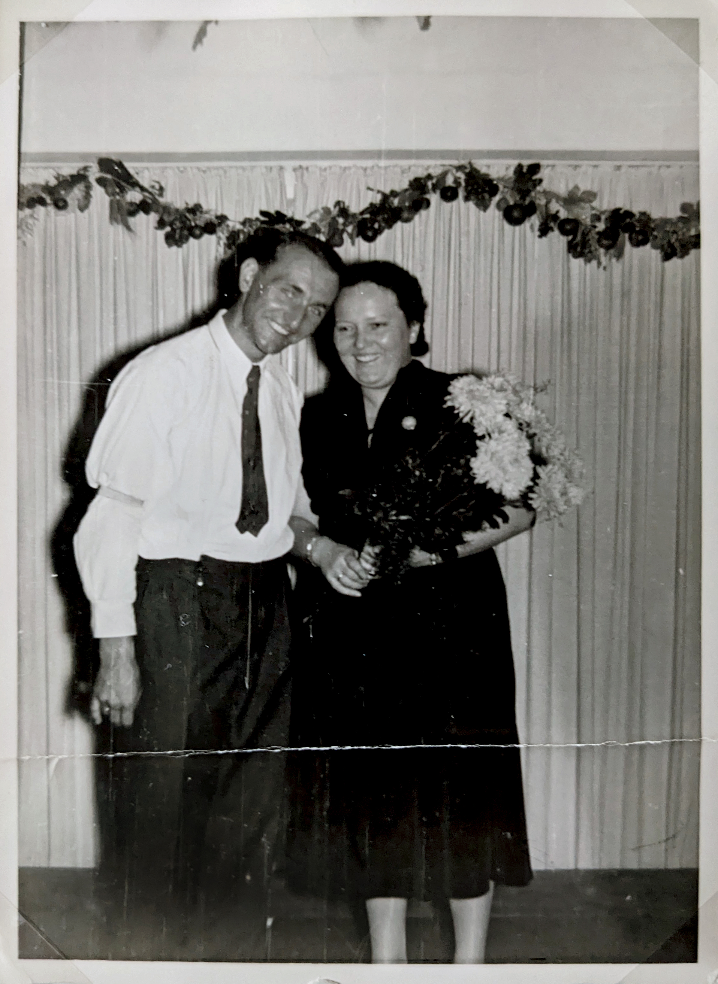 | Beschreibung | Bunter Abend mit dem Kirchenchor in Stadeln, Kurt Engel und das langjährige Chormitglied Hilde Berkelmann, 1957 | ||