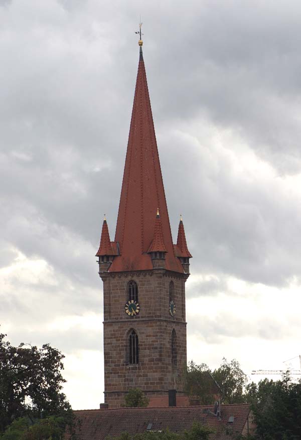 | Beschreibung | Der Turm der Burgfarrnbacher St. Johannis Kirche von Osten aus gesehen. | ||