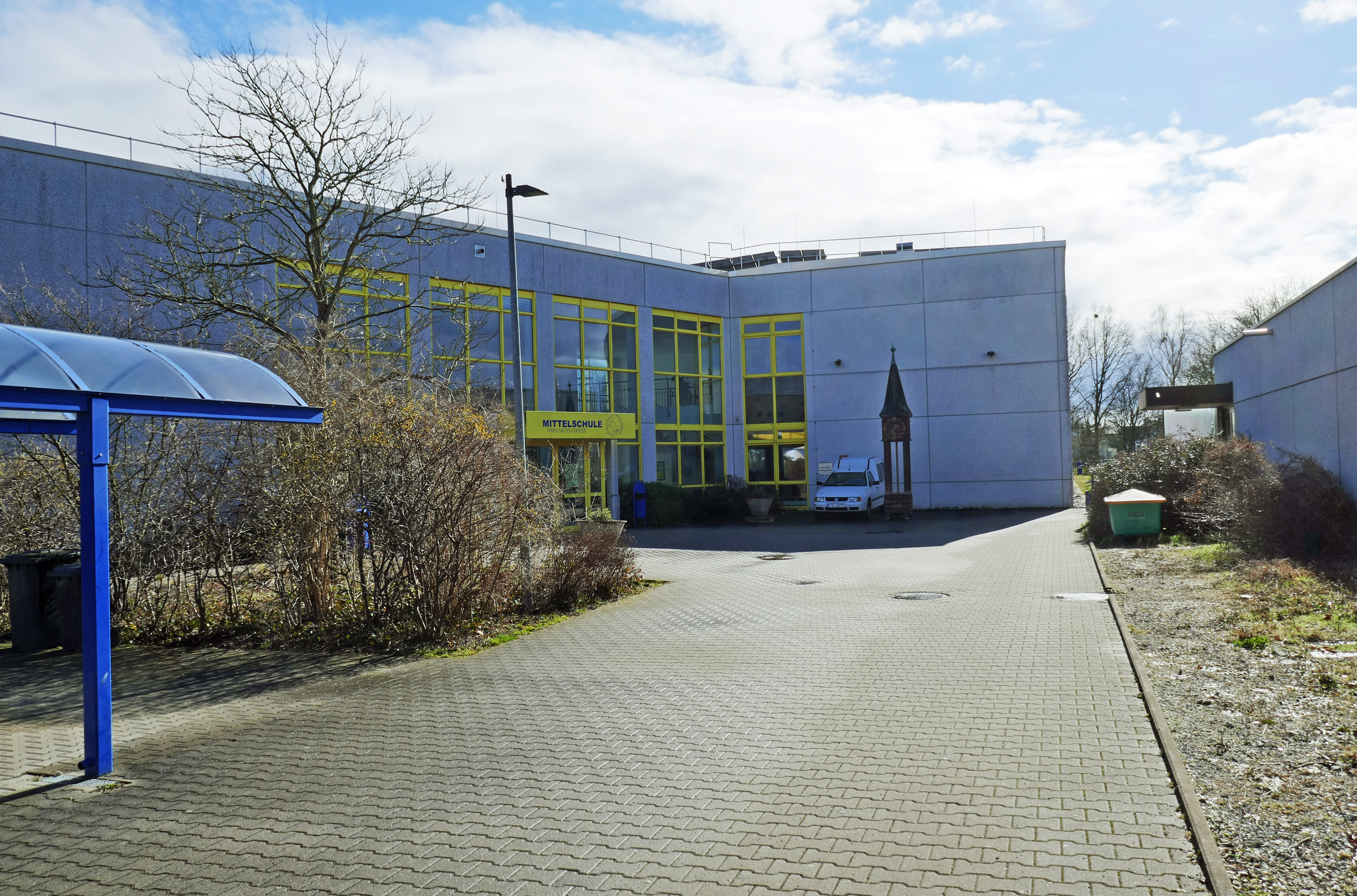 | Beschreibung | Eingangsbereich der Mittelschule in Stadeln mit dem Turm der ehemaligen Gemeinschaftsschule Stadeln, 2020 | ||