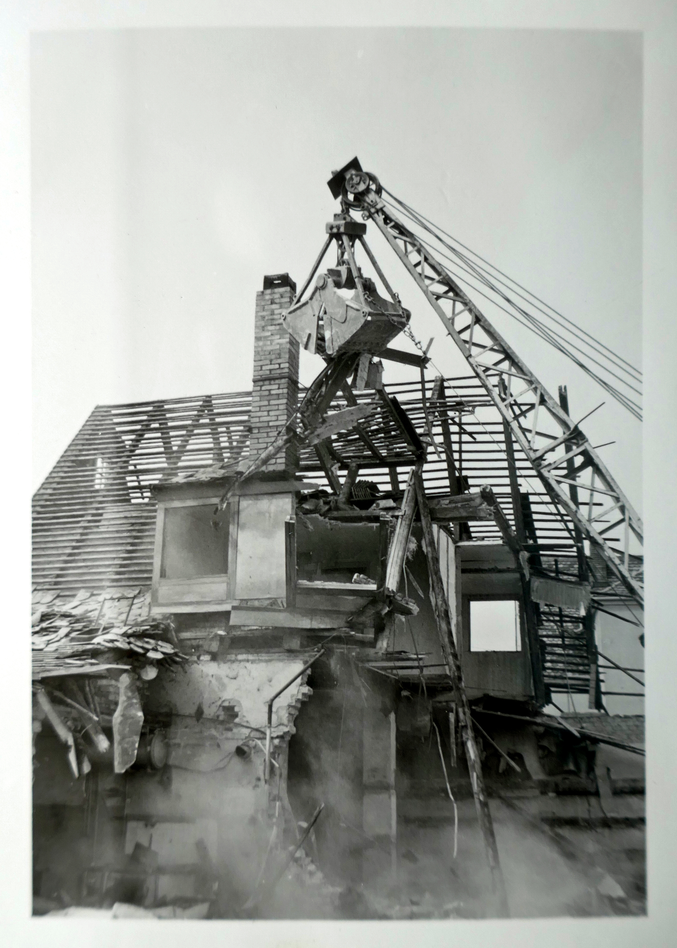 | Beschreibung | Das ehemalige Café Warmuth in Stadeln wird abgerissen, 1966 | ||