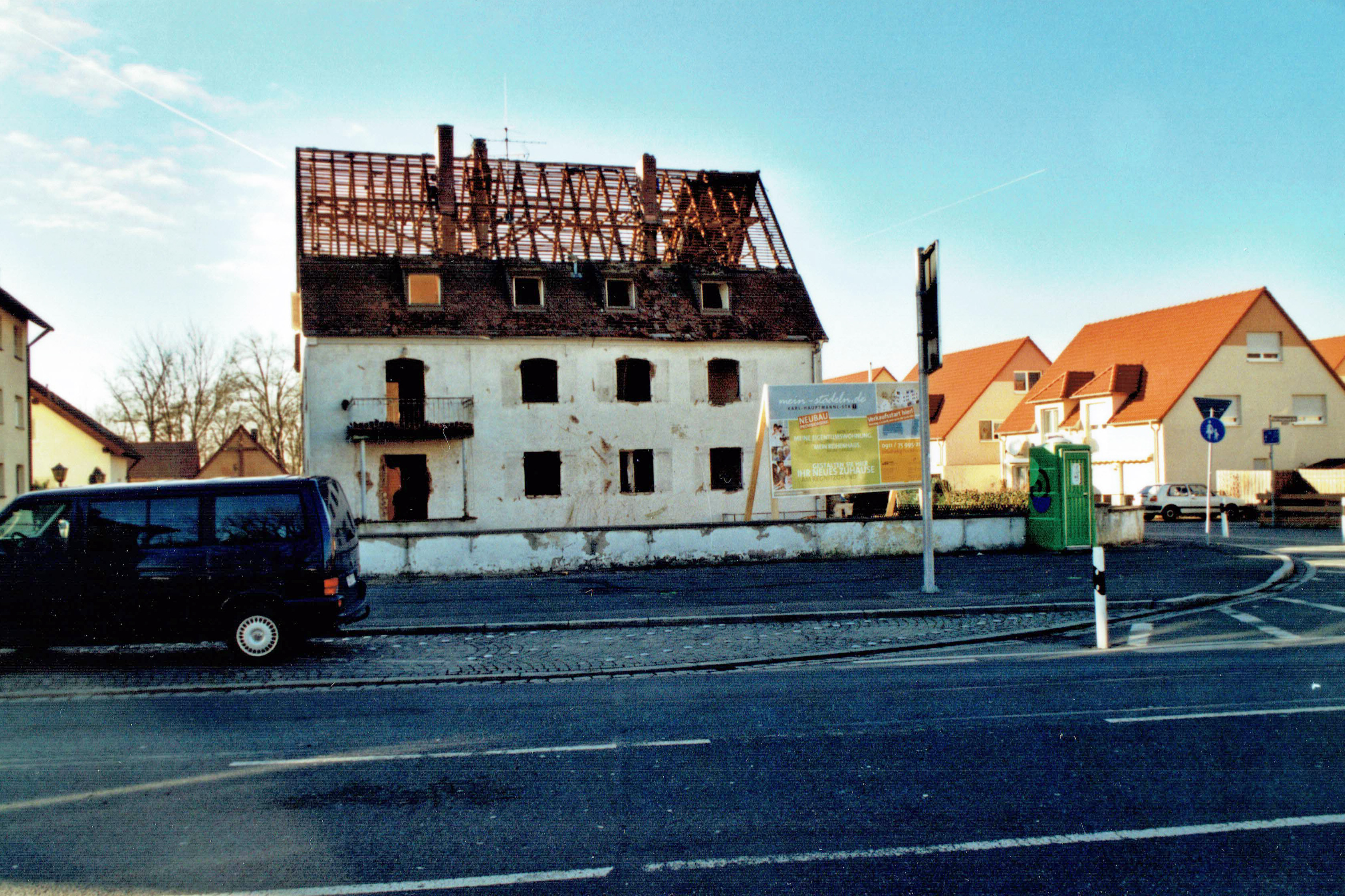 | Beschreibung | Das ehemalige Lehrerwohnhaus wird abgerissen, 2008, heute stehen hier die Gebäude Stadelner Hauptstraße 103-105-107. Das ehem. Schulgelände war rechts bwo die Neubauten stehen | ||