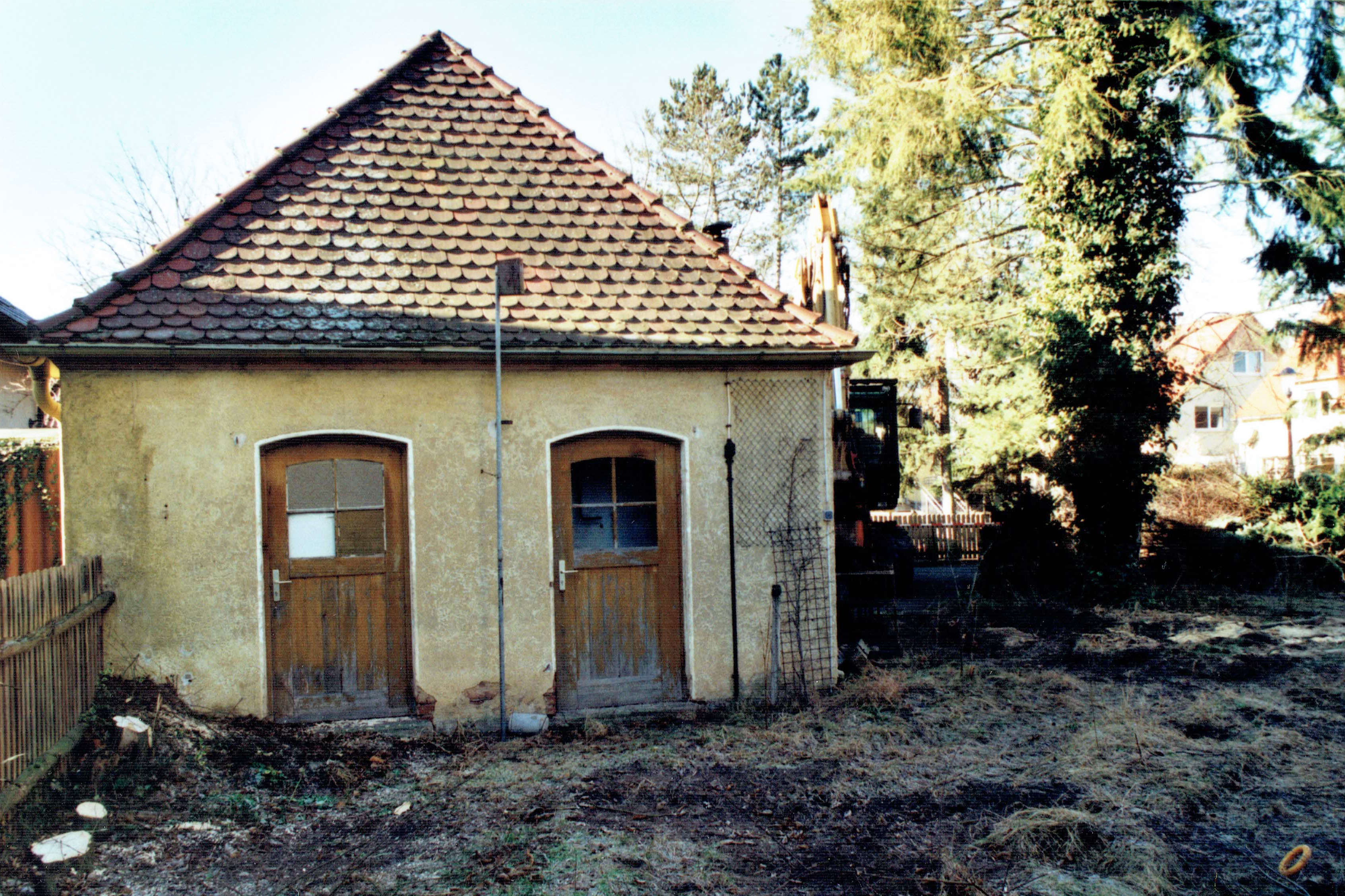 | Beschreibung | Das ehemalige Lehrerwohnhaus wird abgerissen, hier ein Nebengebäude, 2008 | ||