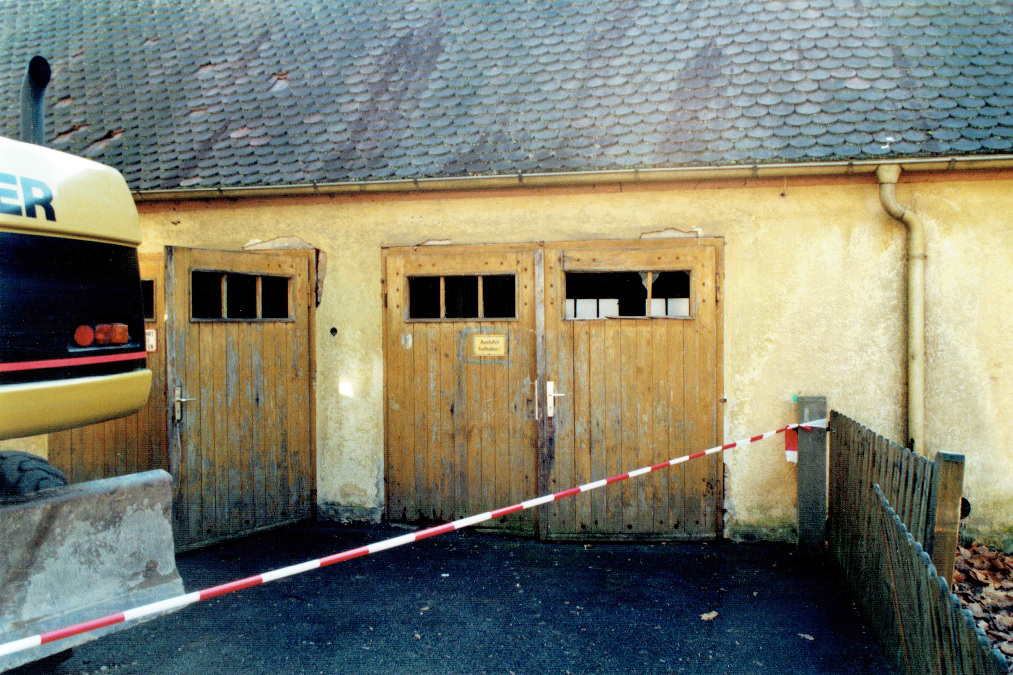 | Beschreibung | Das ehemalige Lehrerwohnhaus wird abgerissen, hier ein Nebengebäude, 2008 | ||