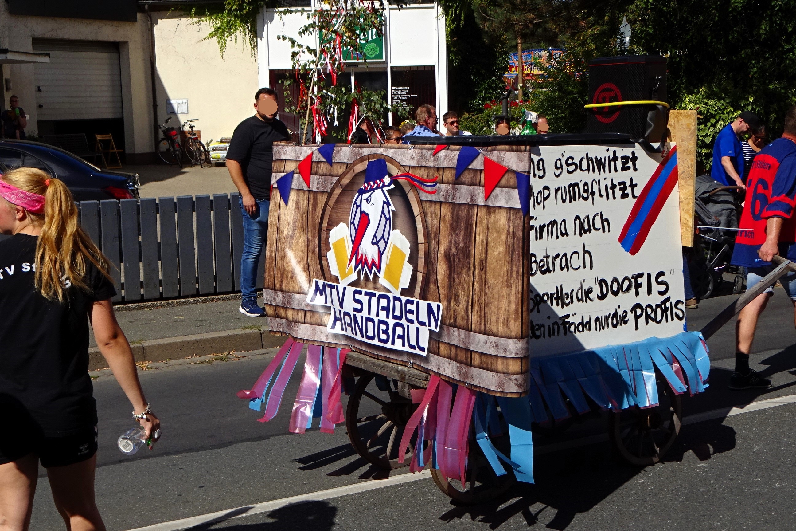| Beschreibung | Festwagen des MTV Stadeln e. V. beim Stadelner Kärwazug, August 2025 | ||