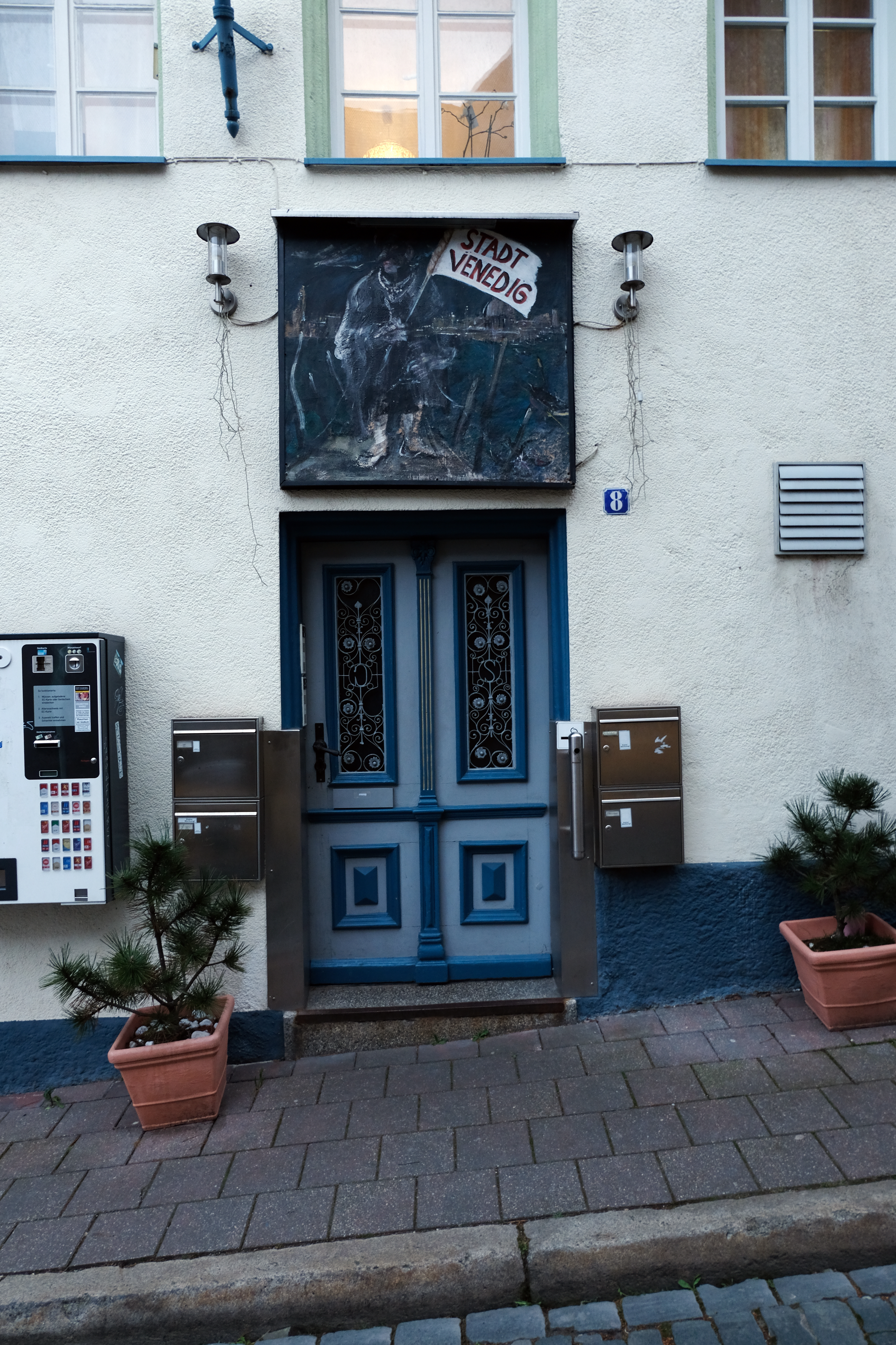 | Beschreibung | Der Eingang zur Gaststätte „Stadt Venedig” in der Fürther Altstadt, März 2020, über der Tür ein Gemälde von Klaus Schmidt | ||