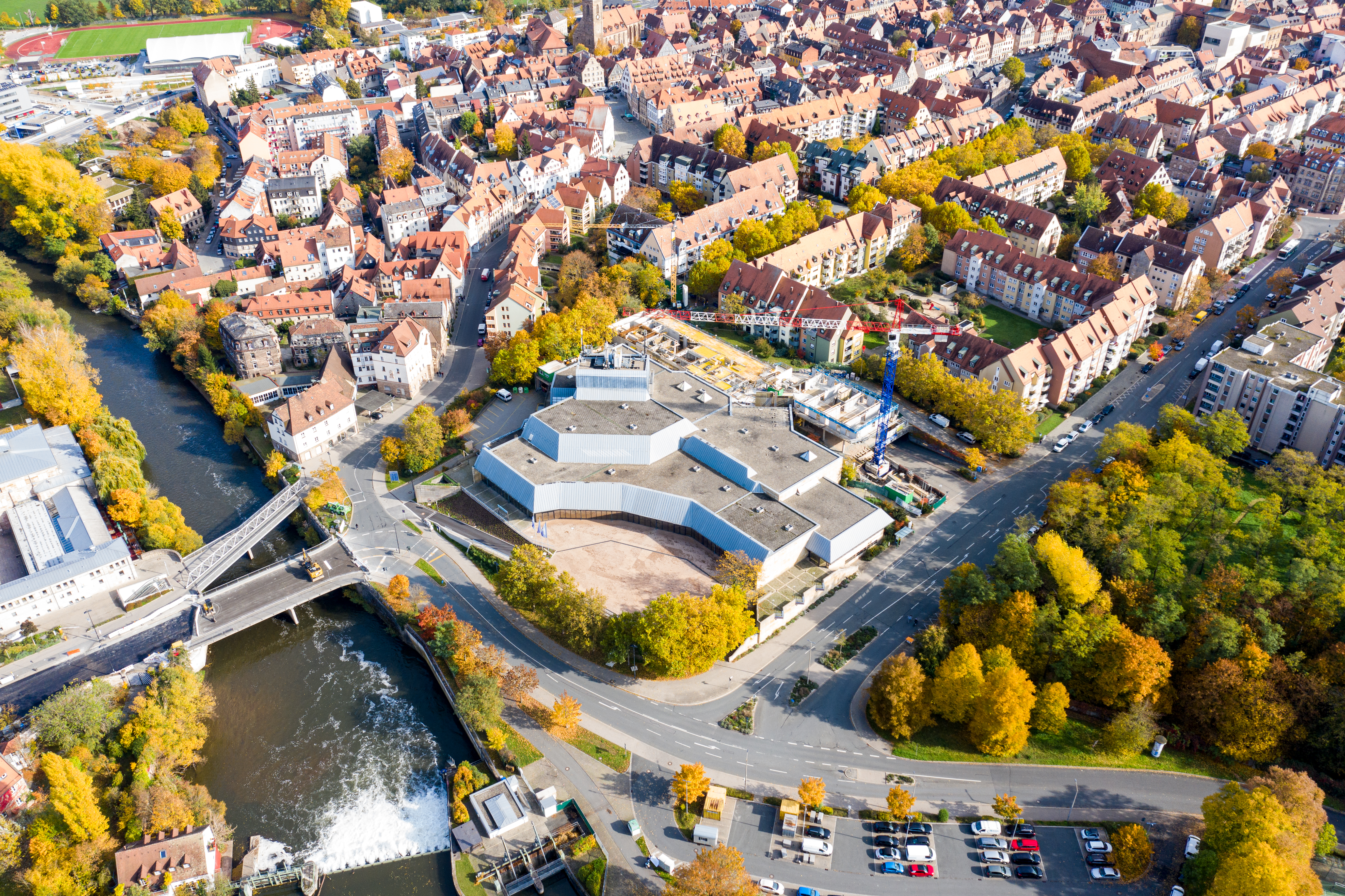 | Beschreibung | Blick über die Stadthalle, dahinter entsteht das neue Holiday Inn Express Hotel, Okt. 2020 | ||