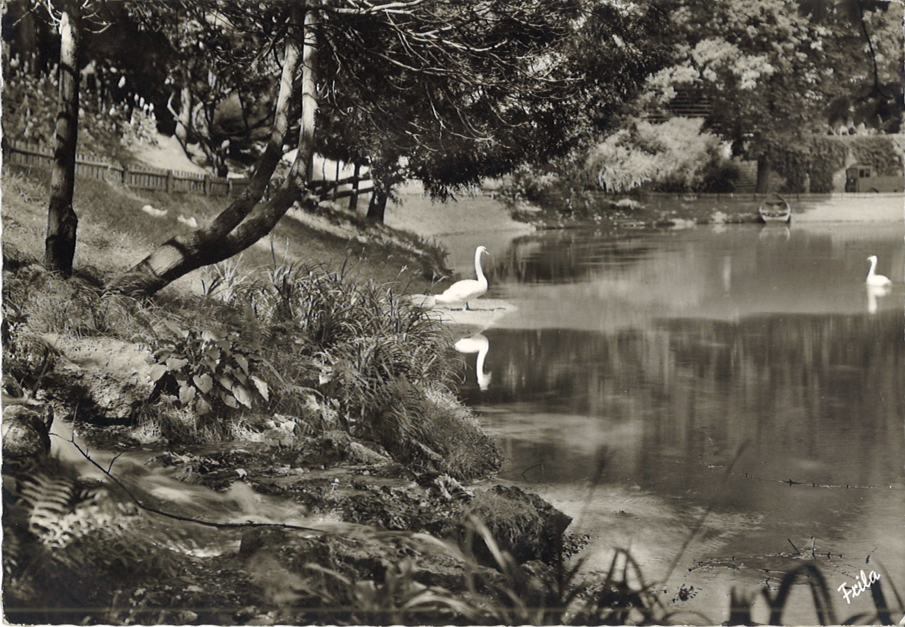 | Beschreibung | Schwanenweiher im Stadtpark. Historische Postkarte | ||