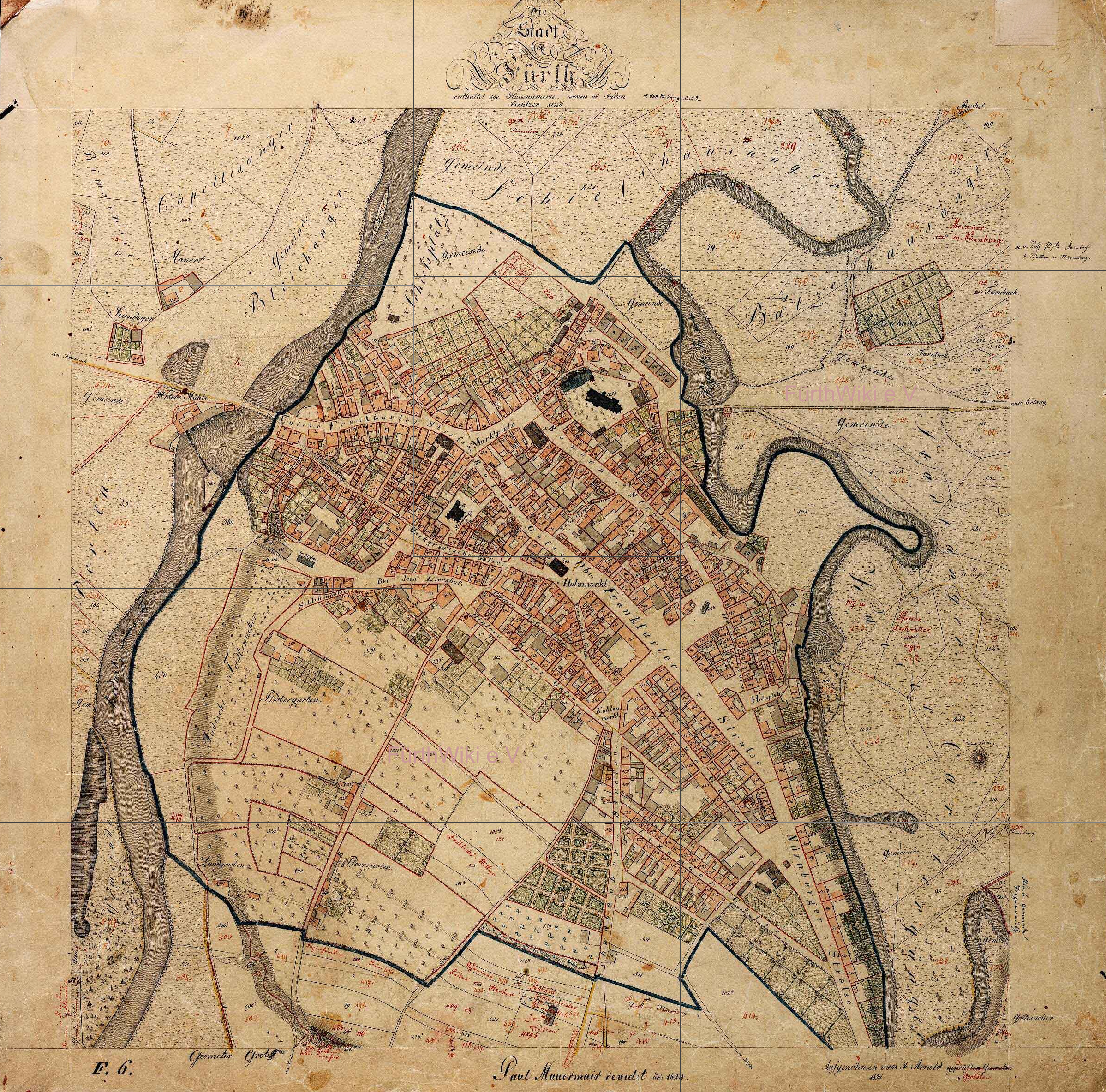 | Dateiinfo (Bild-Unterschrift und Info-Box, automatisch erstellt) | Stadtplan Fürth, 1821 mit Hausnummern und Straßenbezeichnungen. Unterschrift: Enthalten 590 ... Stadtplan Fürth, 1821 mit Hausnummern und Straßenbezeichnungen. Unterschrift: Enthalten 590 Hausnummern, wovon 116 Juden Besitzer sind.<br>Urheber: Stadt Fürth, Paul Mauermair, Grob, J. Arnold<br><br>Lizenz: CC BY-SA 3.0 | ||