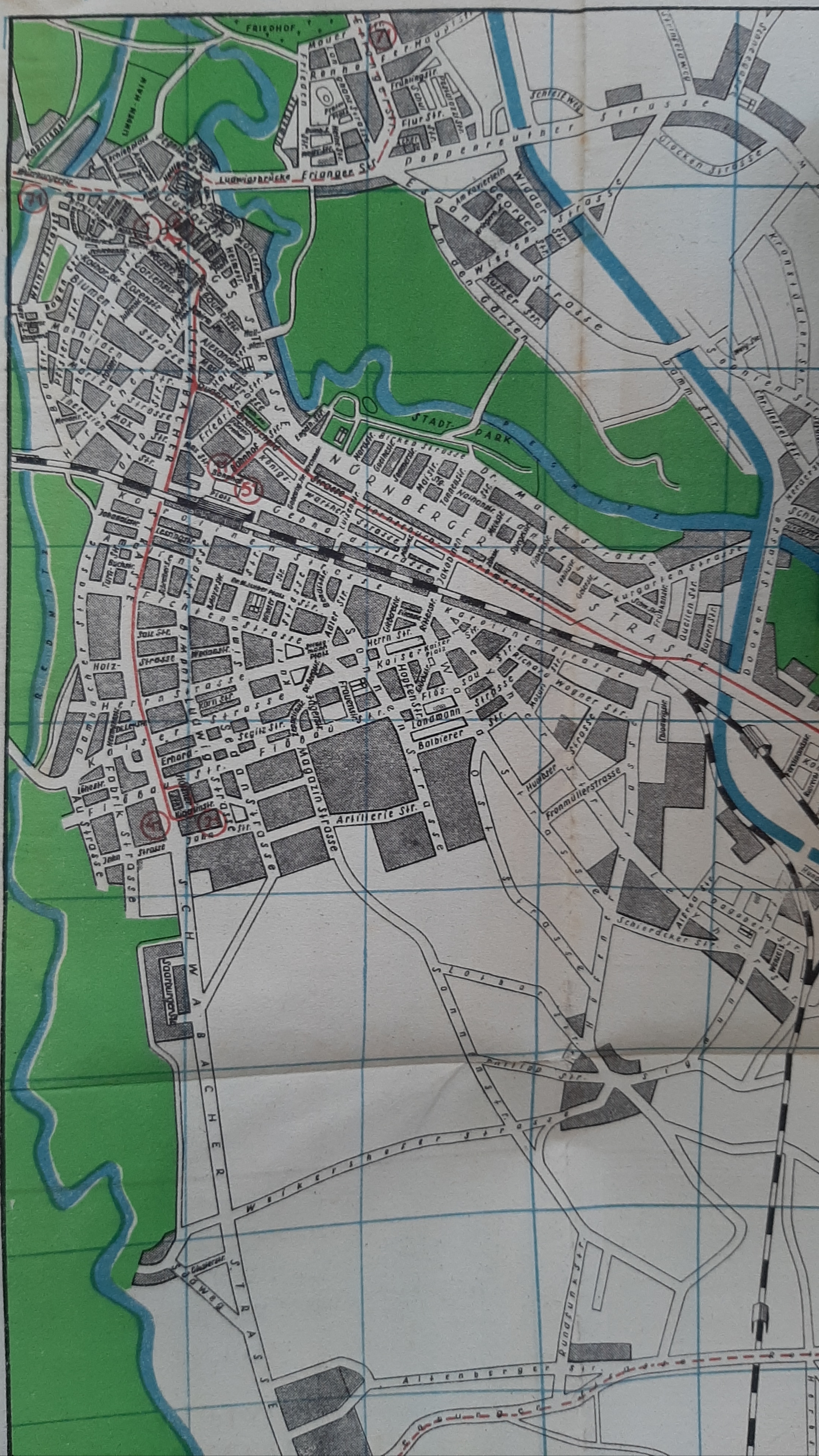 | Beschreibung | Ausschnitt aus dem Stadtplan Nürnberg-Fürth (Maßstab 1:20000), 1949 | ||