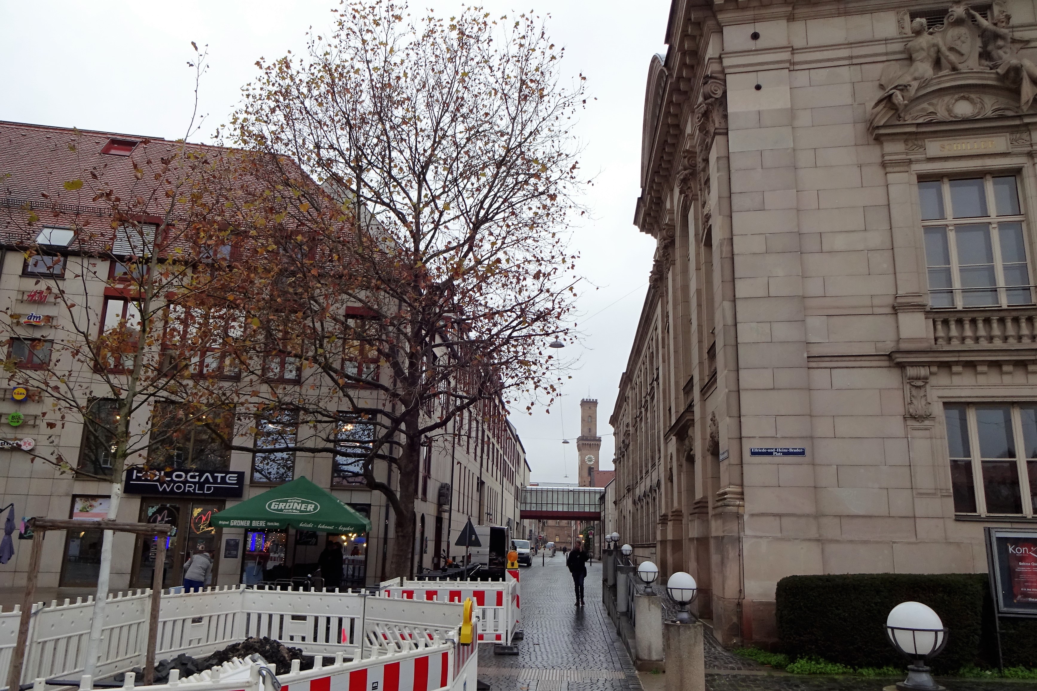 | Beschreibung | Blick über die Bäumenstraße zum Stadttheater und Einkaufszentrum Flair, im Hintergrund das Rathaus im Dezember 2022 | ||