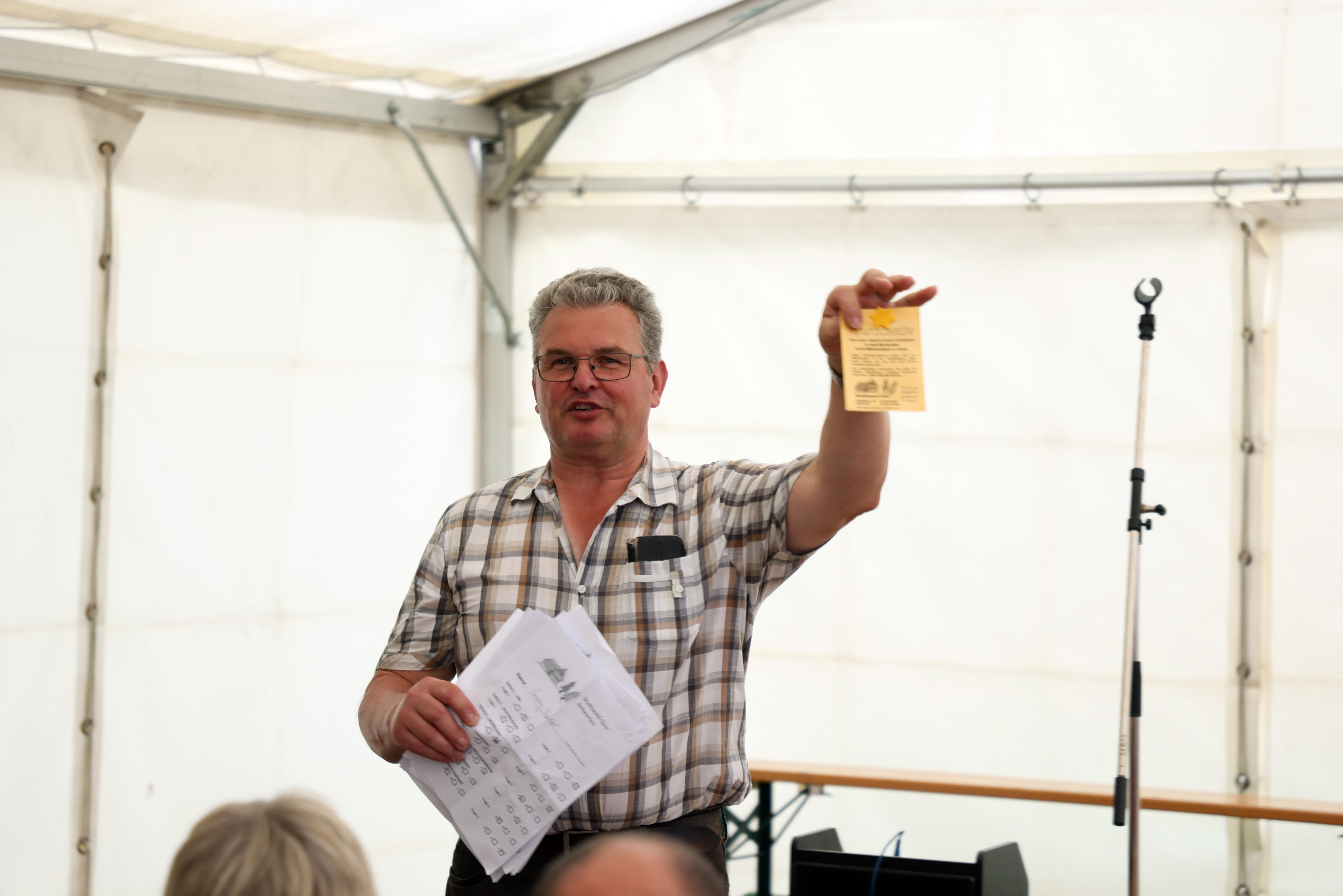 | Beschreibung | Quiz-Preisziehung durch den Stadtförster Martin Straußberger während des Stadtwaldfestes, Sept. 2023 | ||