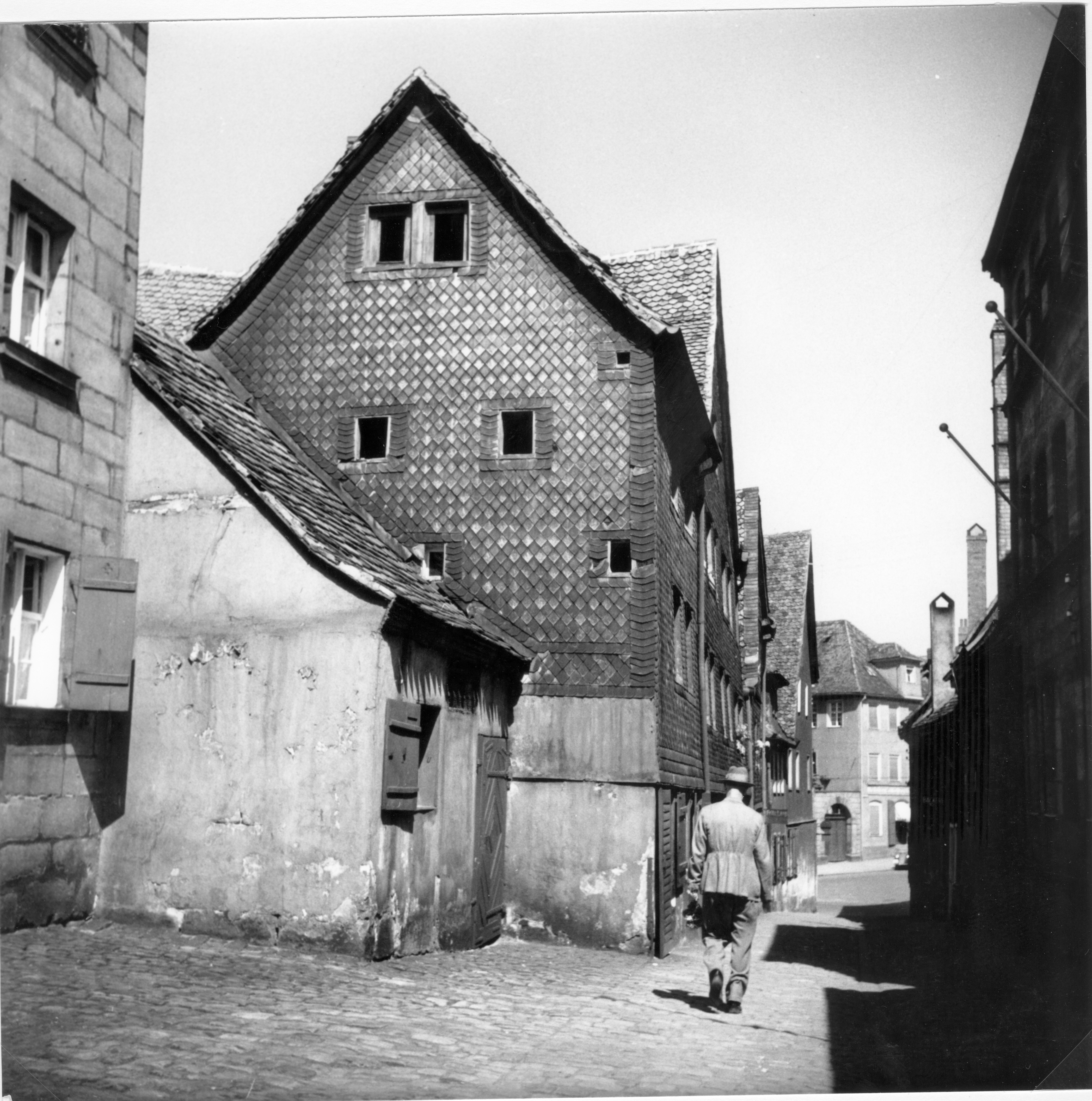 | Dateiinfo (Bild-Unterschrift und Info-Box, automatisch erstellt) | v.l.n.r.: Staudengasse 8, 6, 4, 2, Blick zur Königstraße/Grüner Markt Urheber: unbekannt<br>Lizenz: CC BY-SA 3.0 | ||