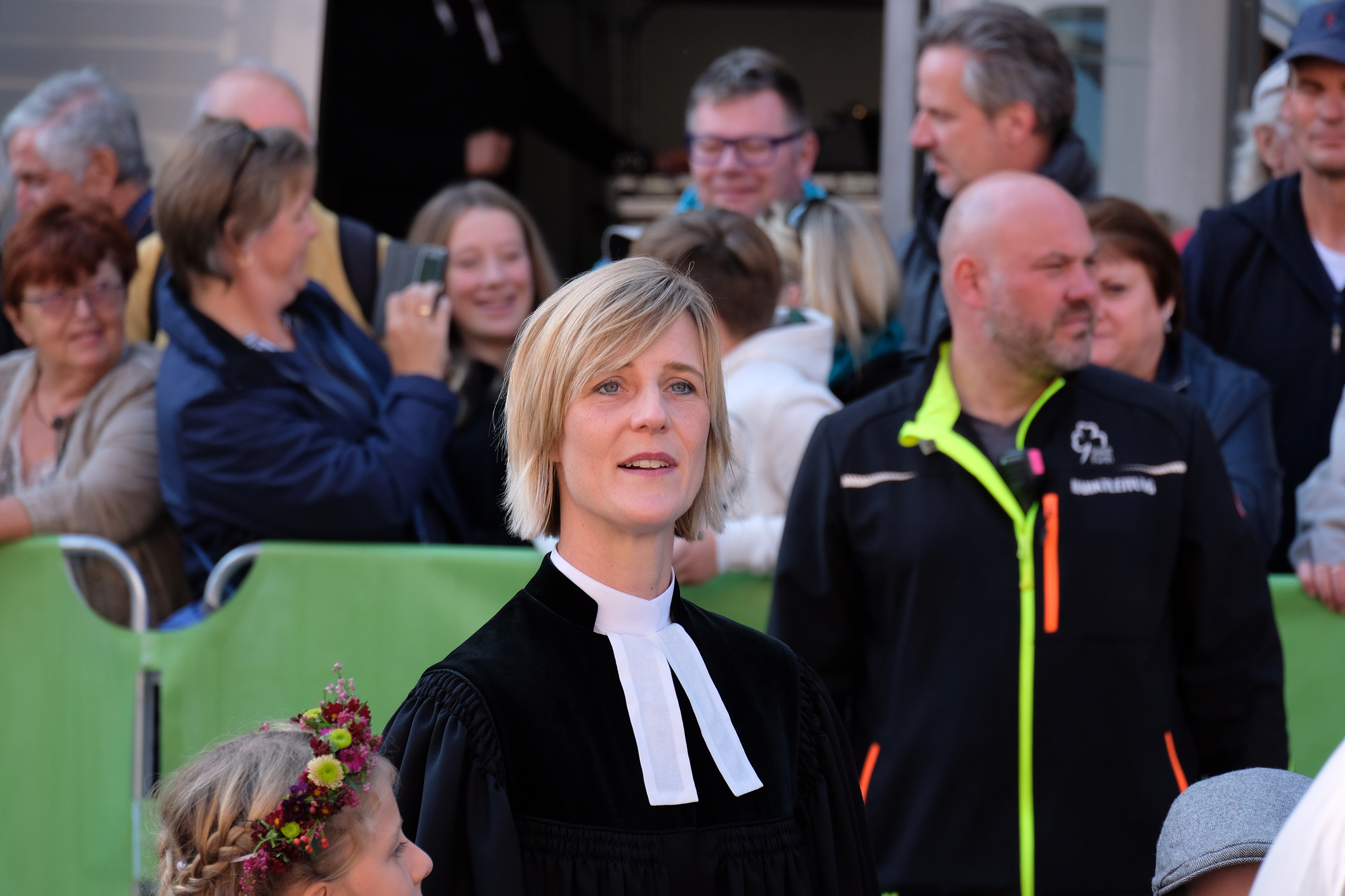 | Beschreibung | Pfarrerin Stefanie Schardien beim Erntedank-Festumzug, 2018 | ||