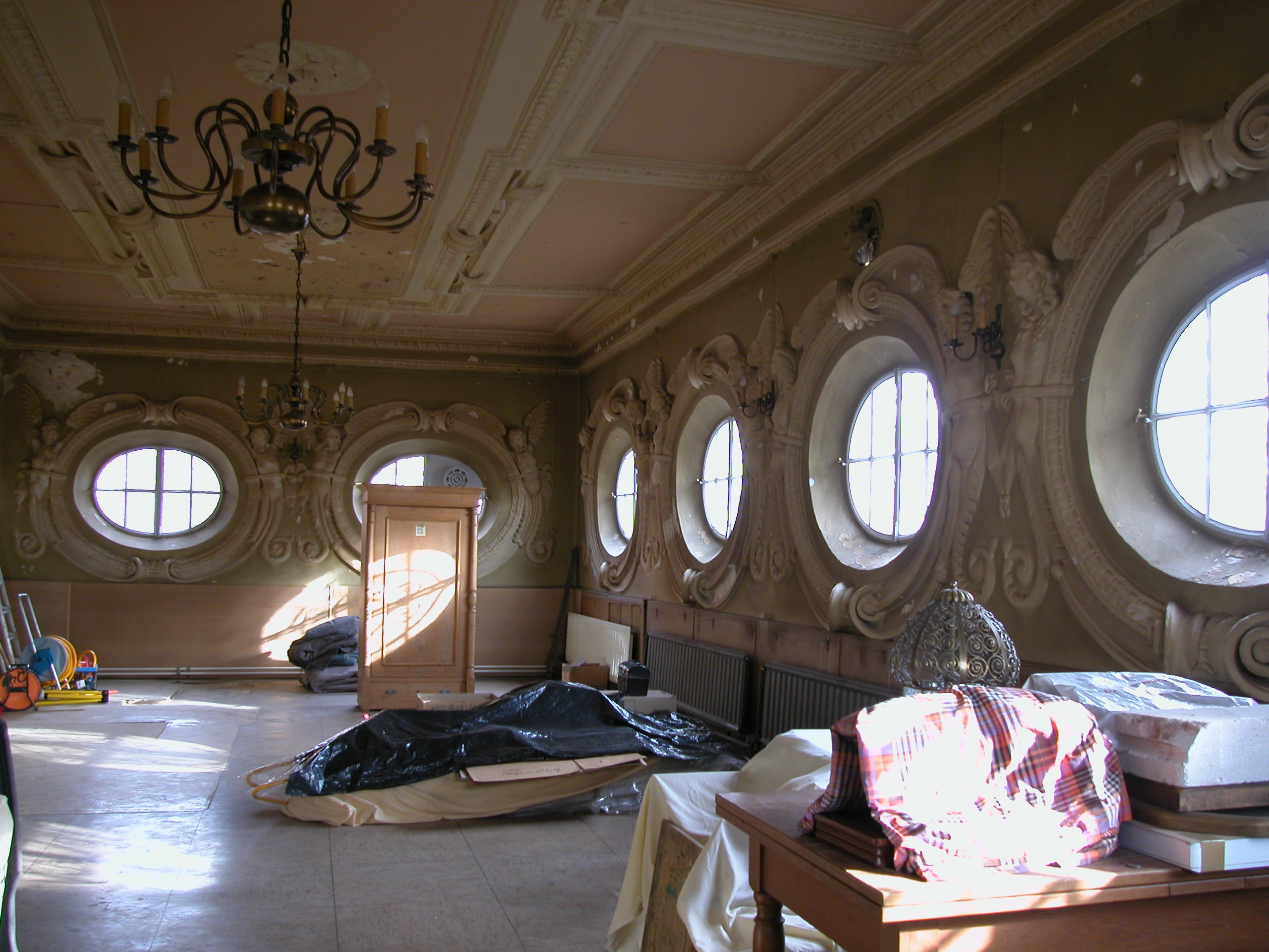 | Beschreibung | Erdgeschoß-Saal im Herrenhaus Steinach mit Querovalfenstern während der Renovierungsphase 2004 | ||