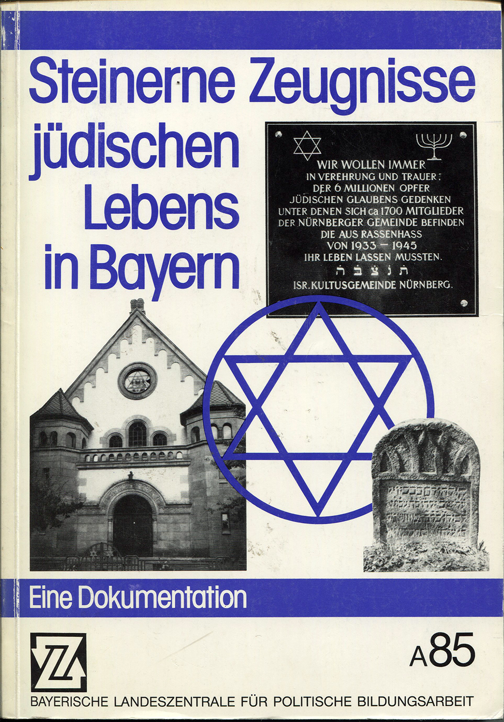 | Dateiinfo (Bild-Unterschrift und Info-Box, automatisch erstellt) | Titelseite: Steinerne Zeugnisse jüdischen Lebens in Bayern, 1992 Urheber: Bay. Landeszentrale für politische Bildungsarbeit<br> | ||