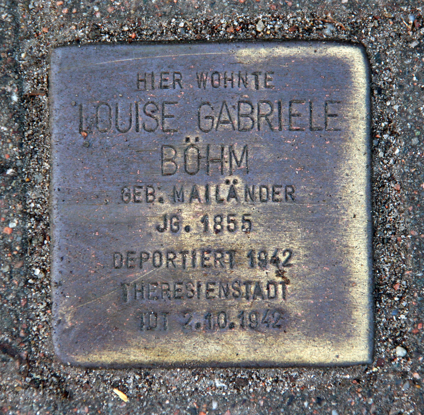 | Datei:Stolperstein Hallerstraße 70 (Louise Gabriele Böhm) in Hamburg-Rotherbaum.JPG | |||