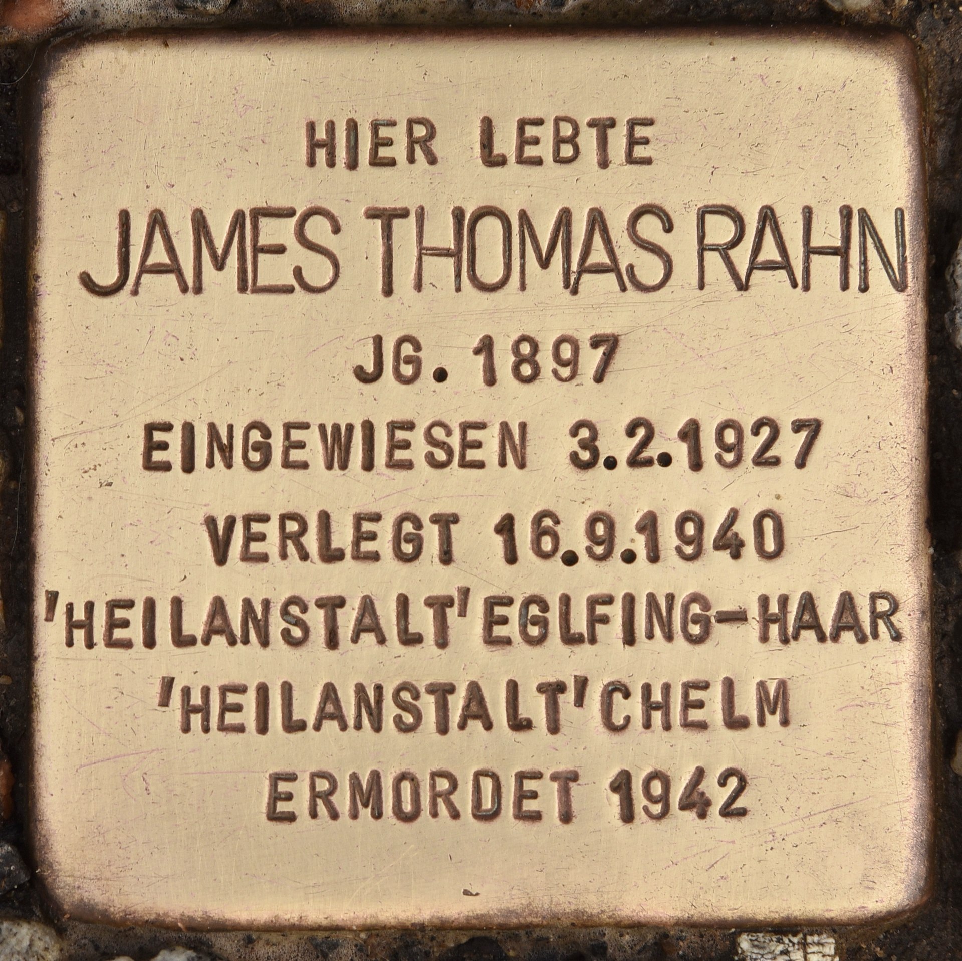 | Dateiinfo (Bild-Unterschrift und Info-Box, automatisch erstellt) | Stolperstein James Thomas Rahn (Erlangen) Urheber: Christian Michelides<br><br>Lizenz: CC BY-SA 3.0 | ||