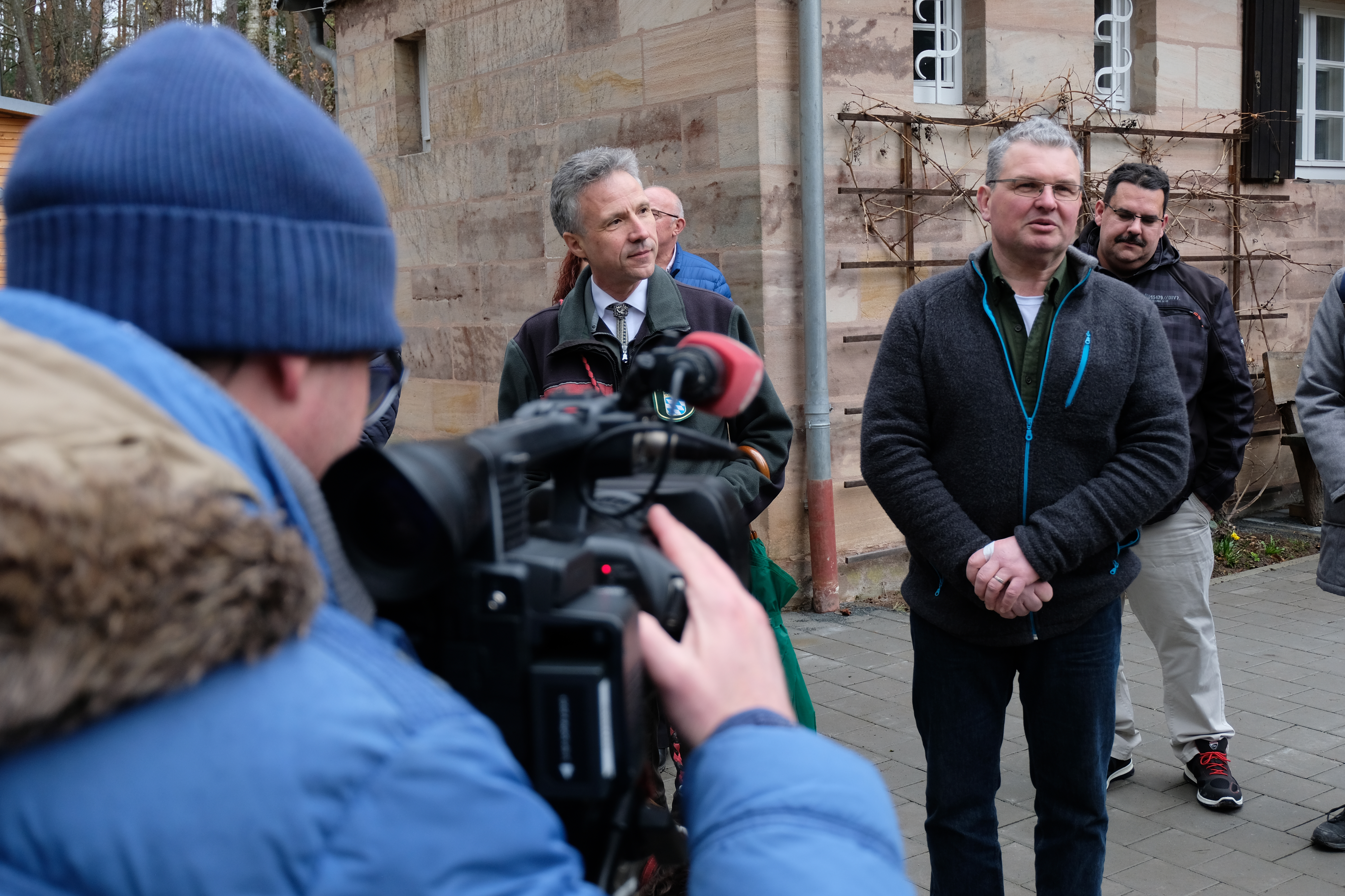 | Beschreibung | Bereichsleiter Forsten Dr. Peter Pröbstle und Stadtförster Martin Straußberger bei der Eröffnung des neuen Wirtschaftsgebäudes, Mrz. 2020 | ||