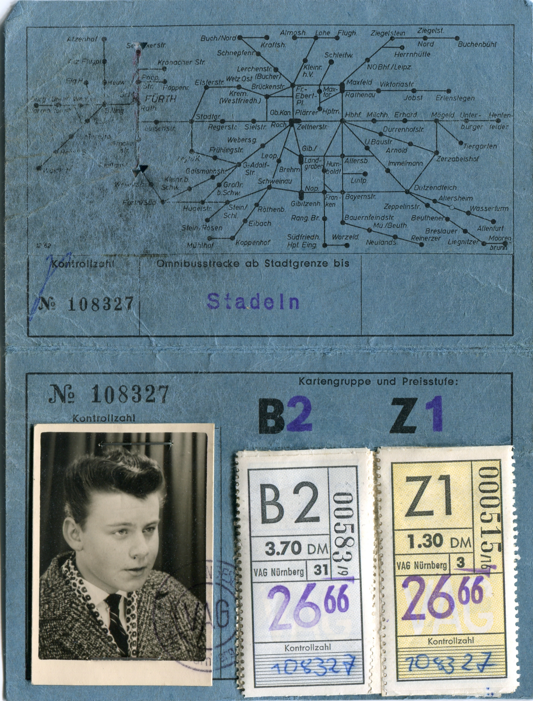 | Beschreibung | Berufs Streckenkarte der VAG von 1966 zwischen Stadeln und Fürth Flößaustraße. Mit Zuschlagsmarke für Stadeln (noch selbständige Gemeinde). | ||