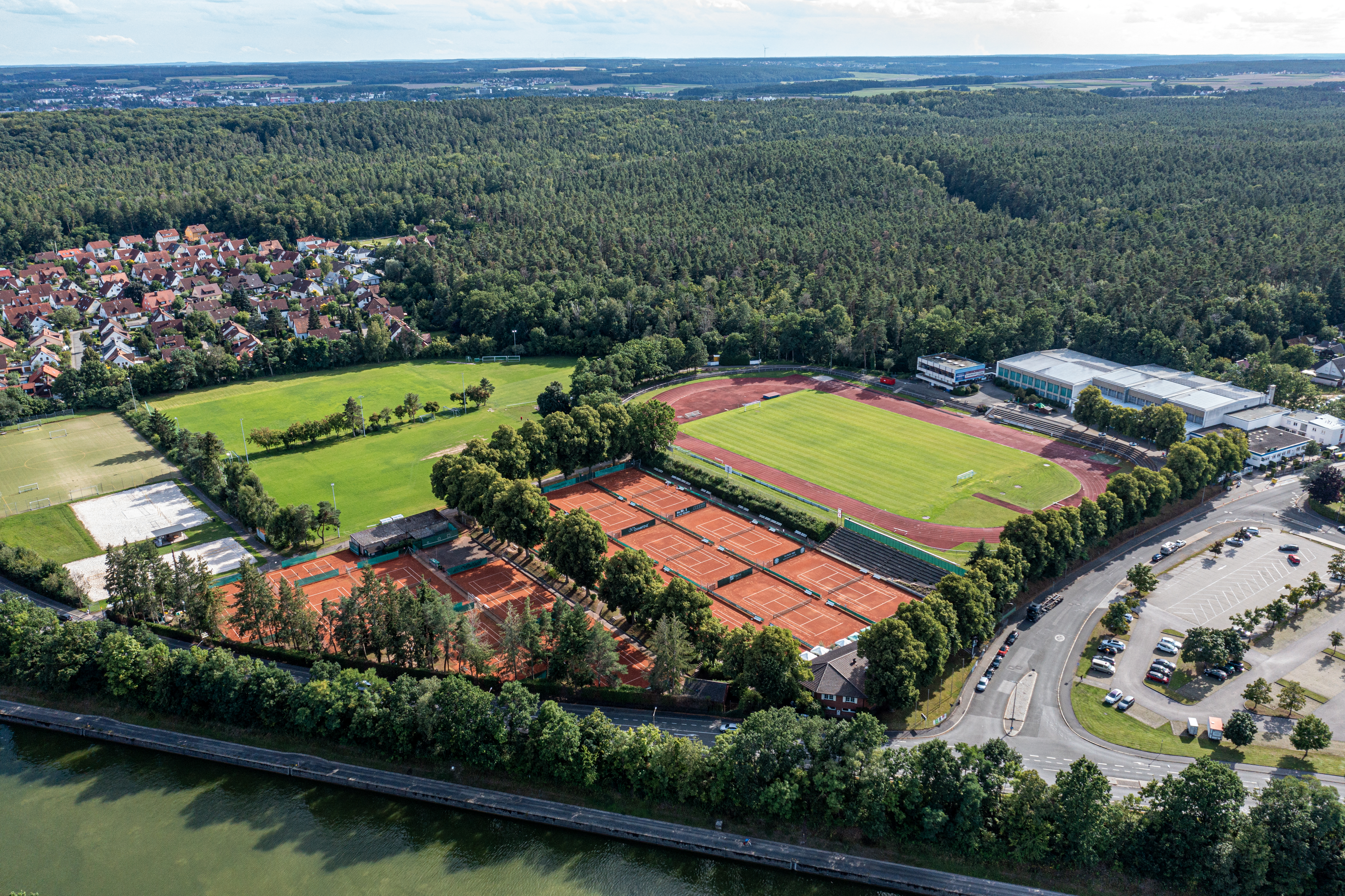| Beschreibung | Der Sportverein TV Fürth 1860 an der Coubertinstraße in Eschenau, im Hintergrund der Stadtwald, Aug. 2021 | ||