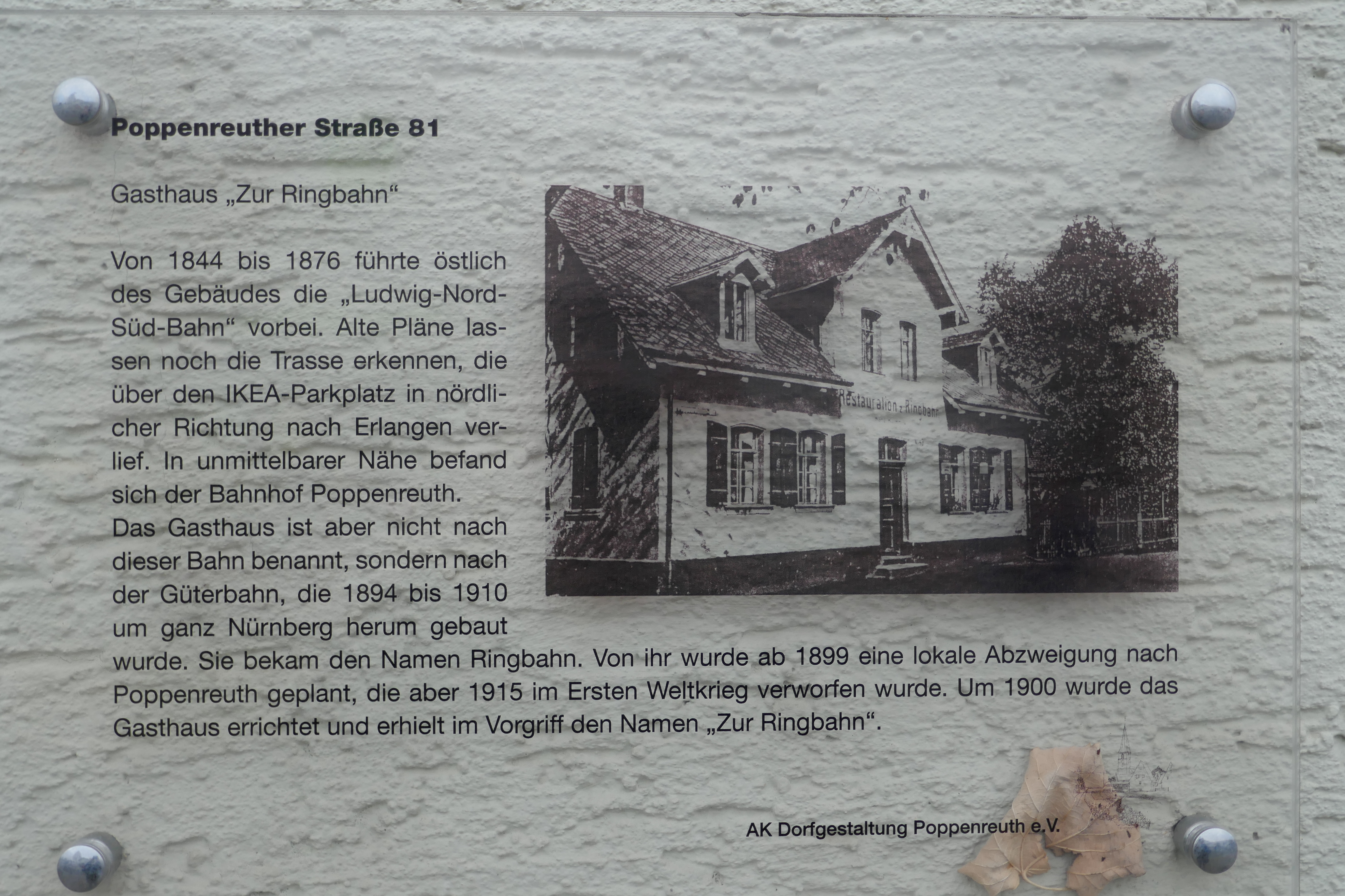 | Beschreibung | Gedenktafel des AK Dorfgestaltung Poppenreuth e. V. | ||