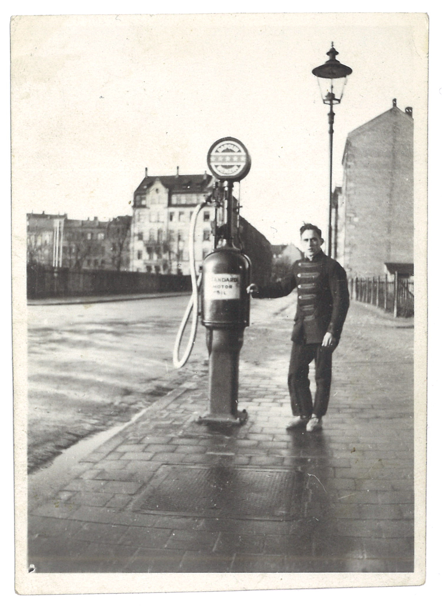 | Beschreibung | Erste Tankstelle der Familie Miederer auf dem Bürgersteig vor Waldstr. 35. Inhaber Matthias Miederer in Livree. Im Hintergrund Flößaustr. 165. Aufnahme 1927 | ||