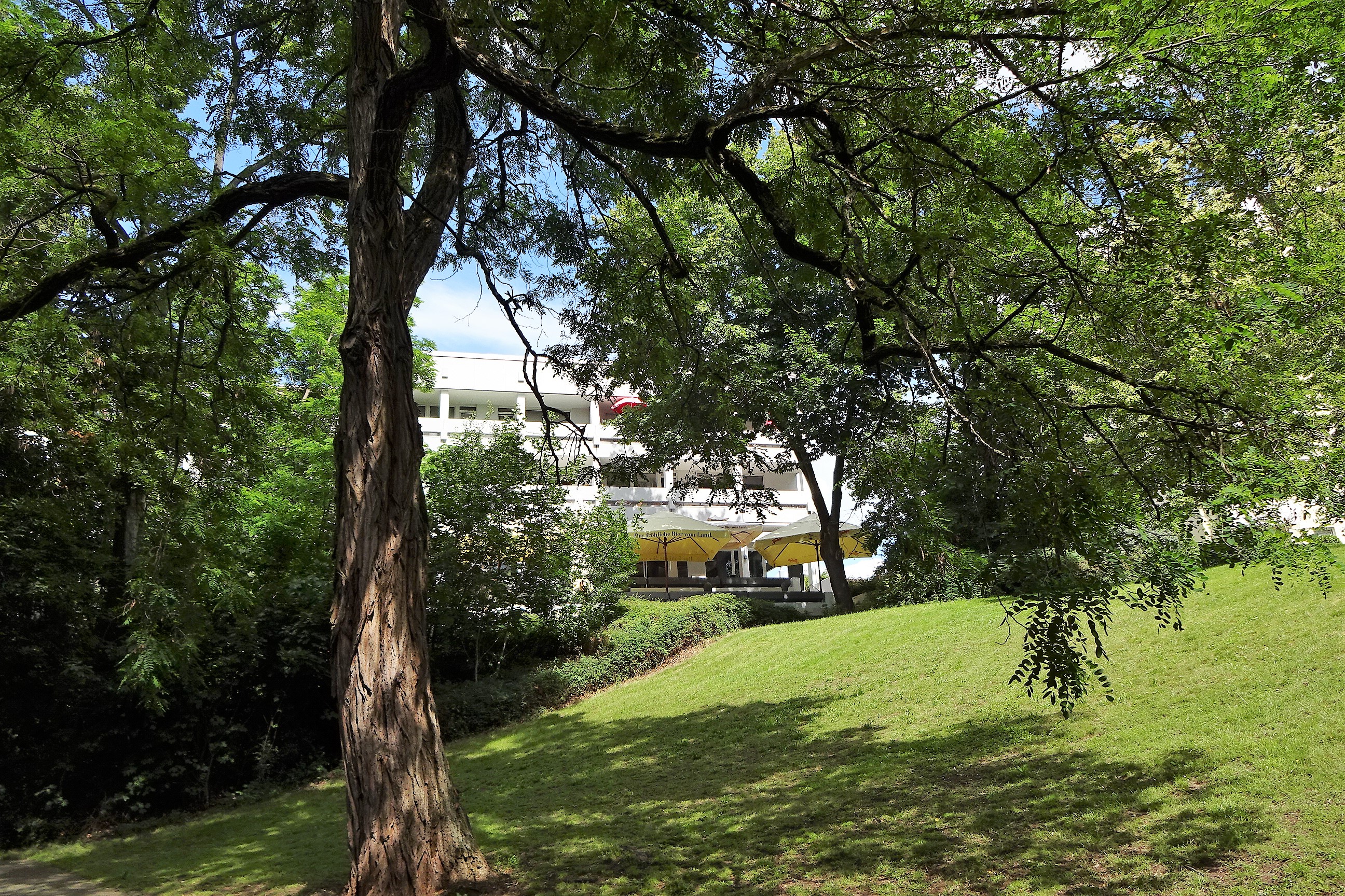 | Beschreibung | Am Praterweiher: Gebäude Erlanger Straße 59 mit Restaurantterrasse, Juni 2020 | ||