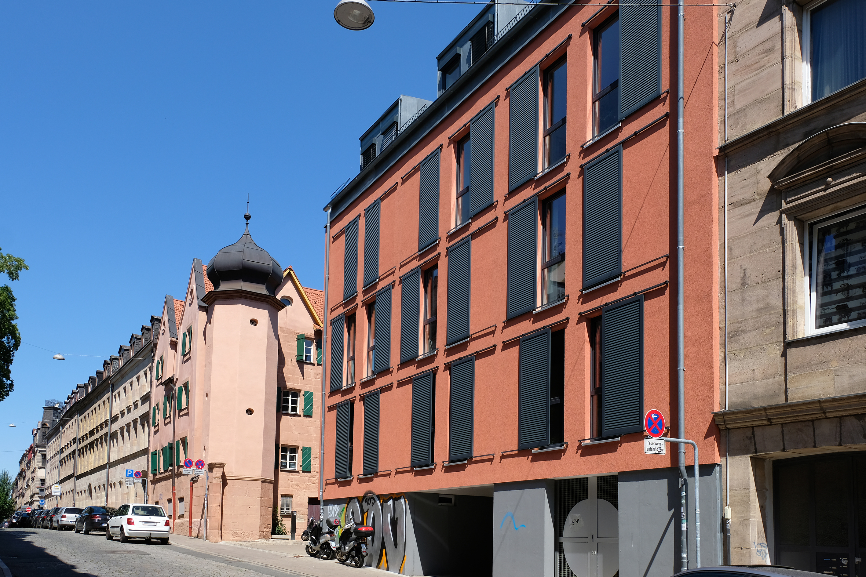 | Beschreibung | Blick in die Theaterstraße: rechts im Bild das Lochner'sche Gartenhaus, davor das 2011 fertiggestellte Gebäude Theaterstraße 35, 2018 | ||
