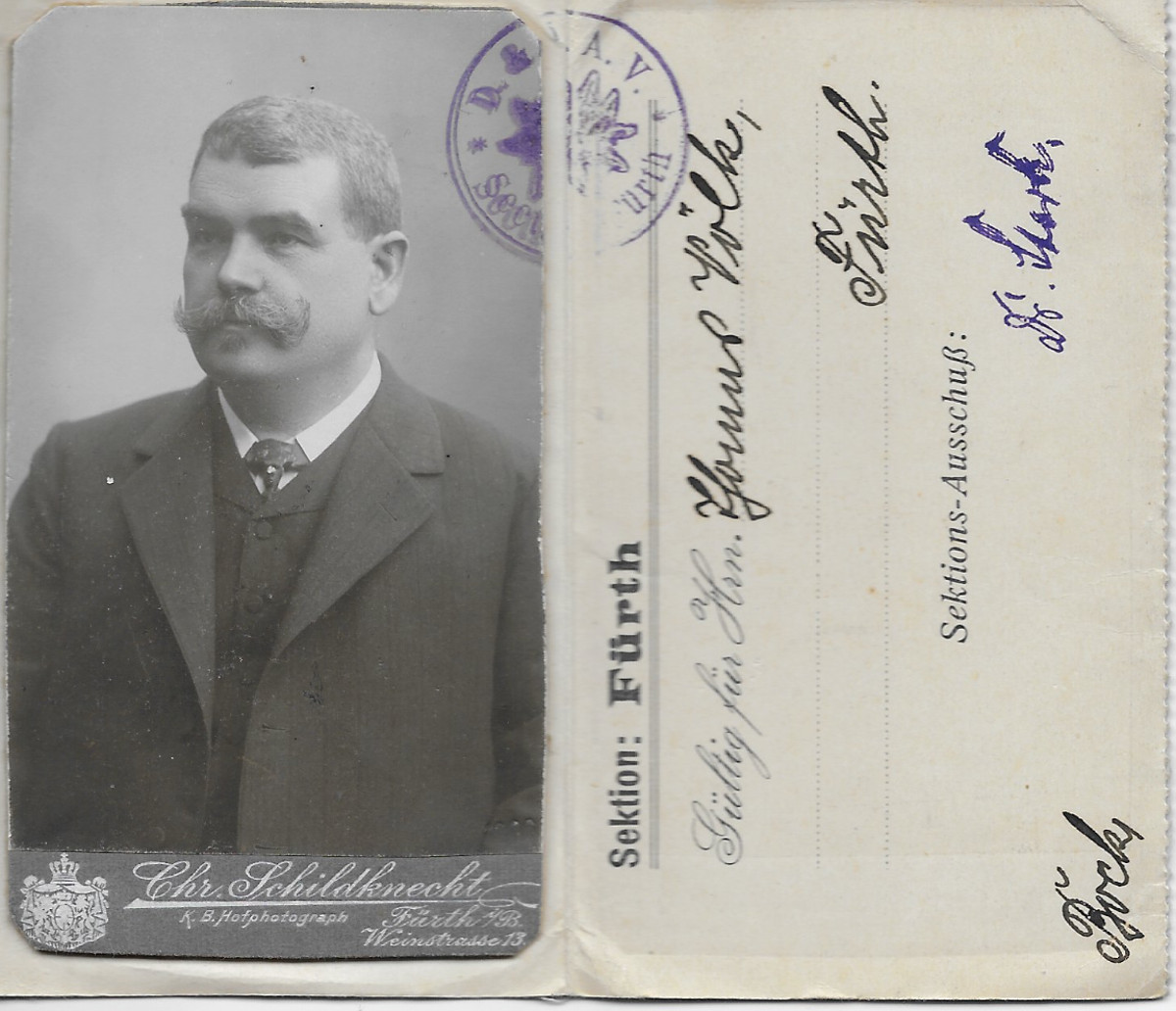 | Beschreibung | Mitgliedsausweis von Herrn Kommerzienrat Thomas Völk im Deutschen Alpenverein – Porträtfotografie des Ateliers Chr. Schildknecht | ||