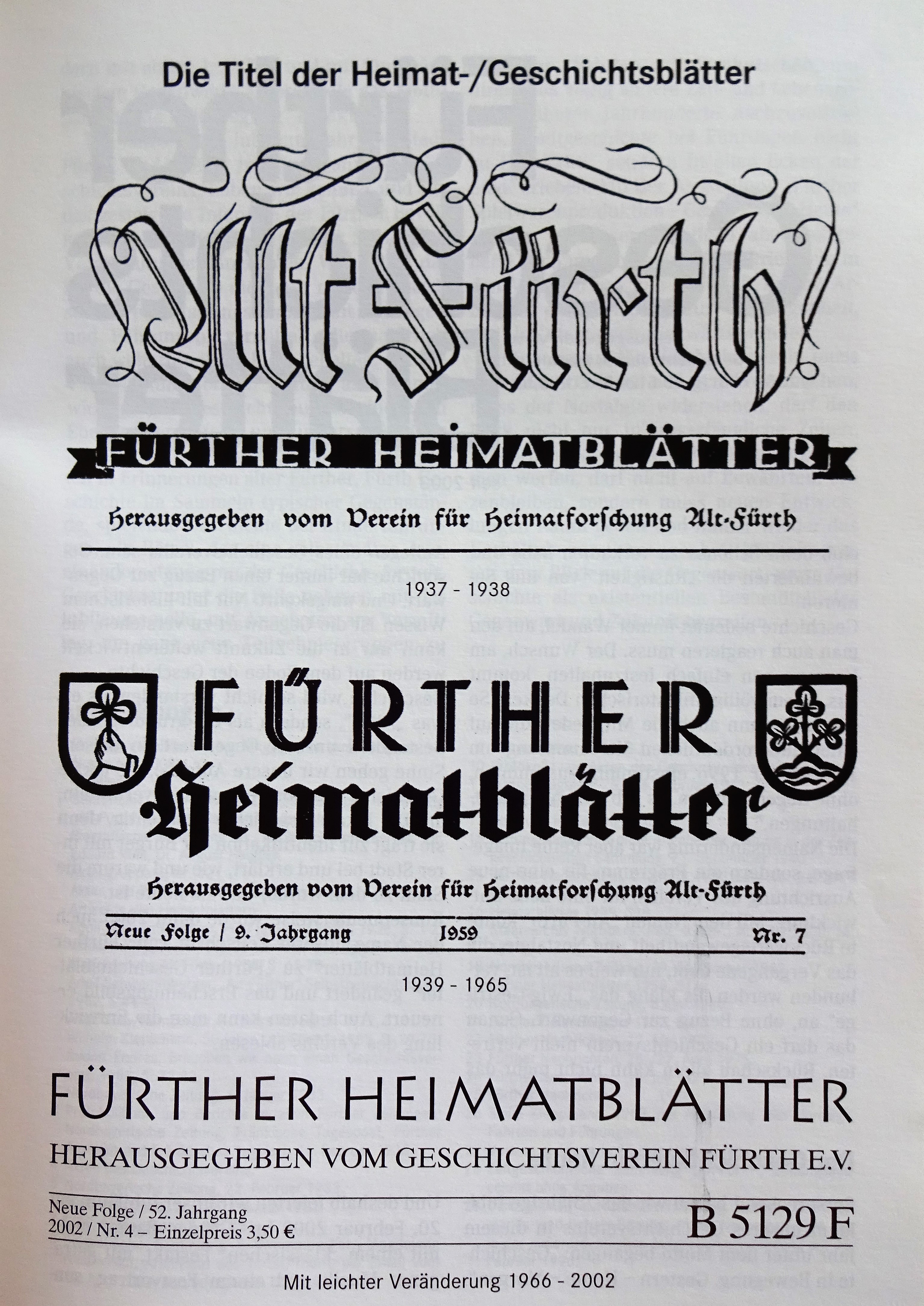 | Beschreibung | Titeländerungen der Fürther Heimatblätter ab 1937 bis heute | ||