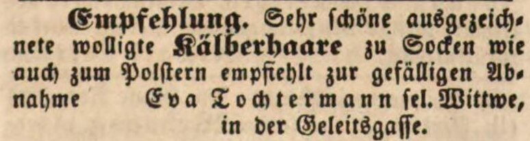 | Beschreibung | Zeitungsannonce von Eva Tochtermann, Oktober 1848 | ||