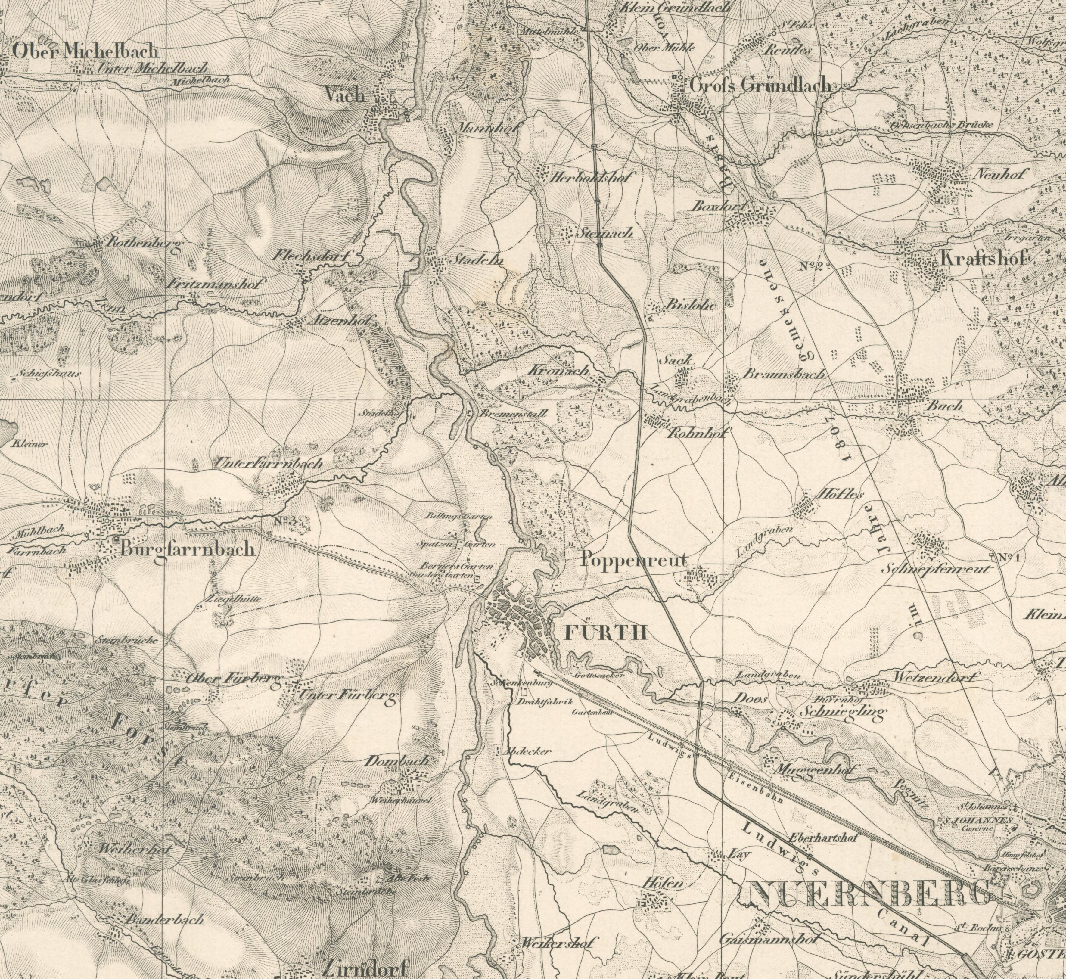 | Quellangaben | Topographischer Atlas vom Königreiche Baiern diesseits des Rhein. Blatt 34: Nuernberg - online-Digitalisat der Bayerischen Staatsbibliothek | ||