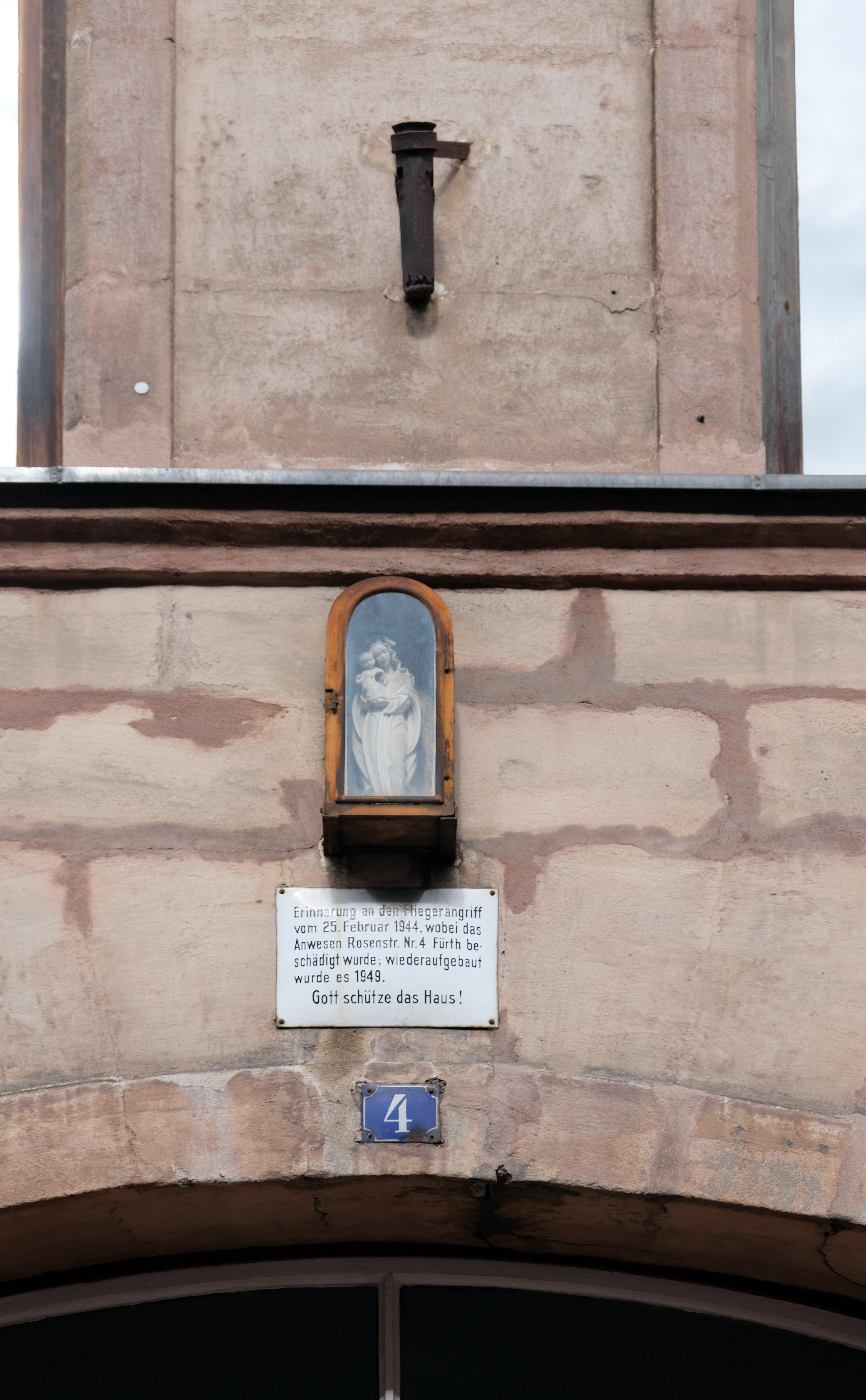 | Beschreibung | Rosenstraße 4, Schild zur Erinnerung an den Bombenangriff am 25. April 1944, Aufnahme April 2018 | ||