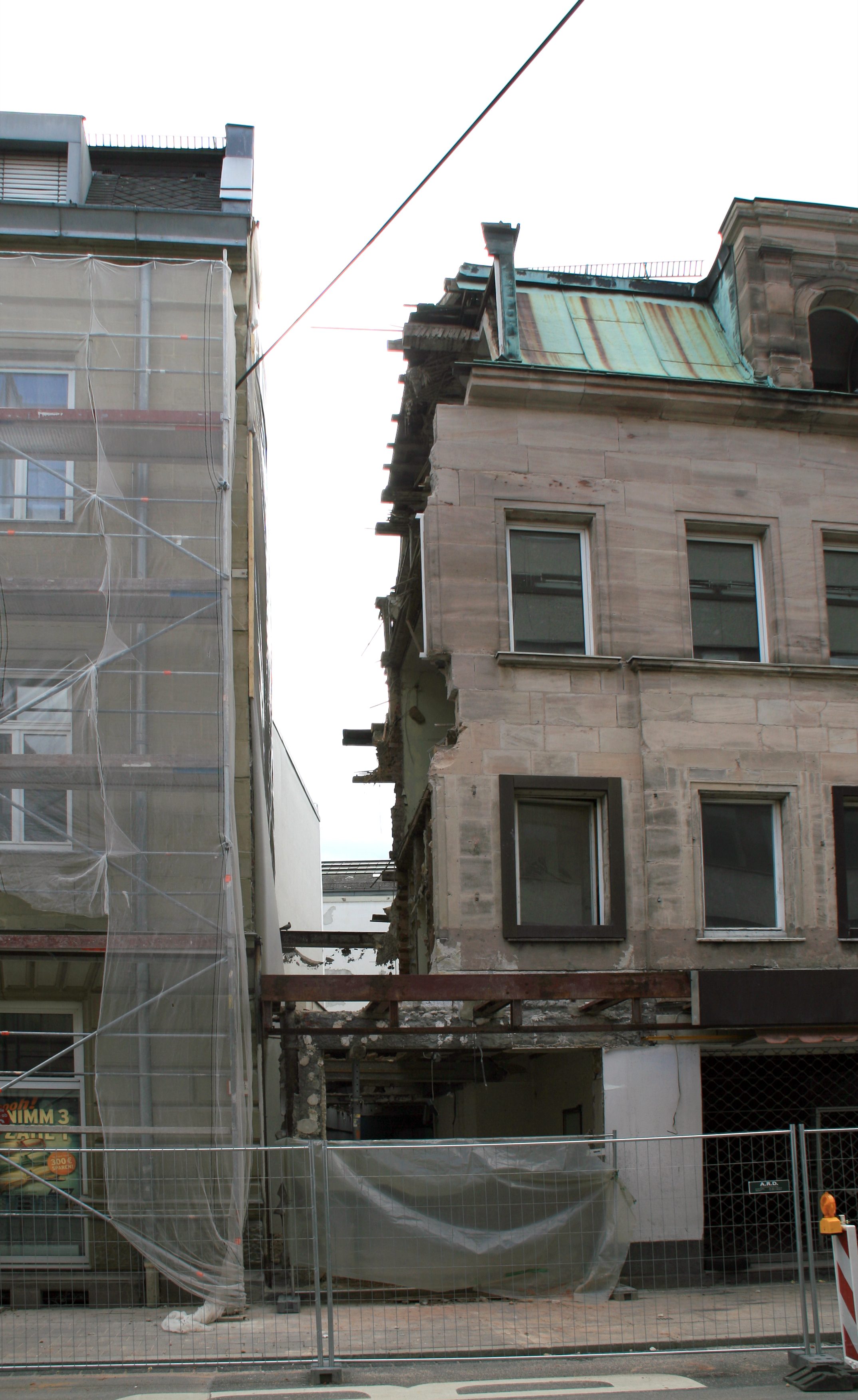 | Beschreibung | Links Moststraße 12 - rechts das ehem. Modehaus Fiedler (Hallstraße 9) - hier Trennung der beiden Gebäude, links steht noch - rechts Abriss im Jahr 2013/14 für die Neue Mitte | ||