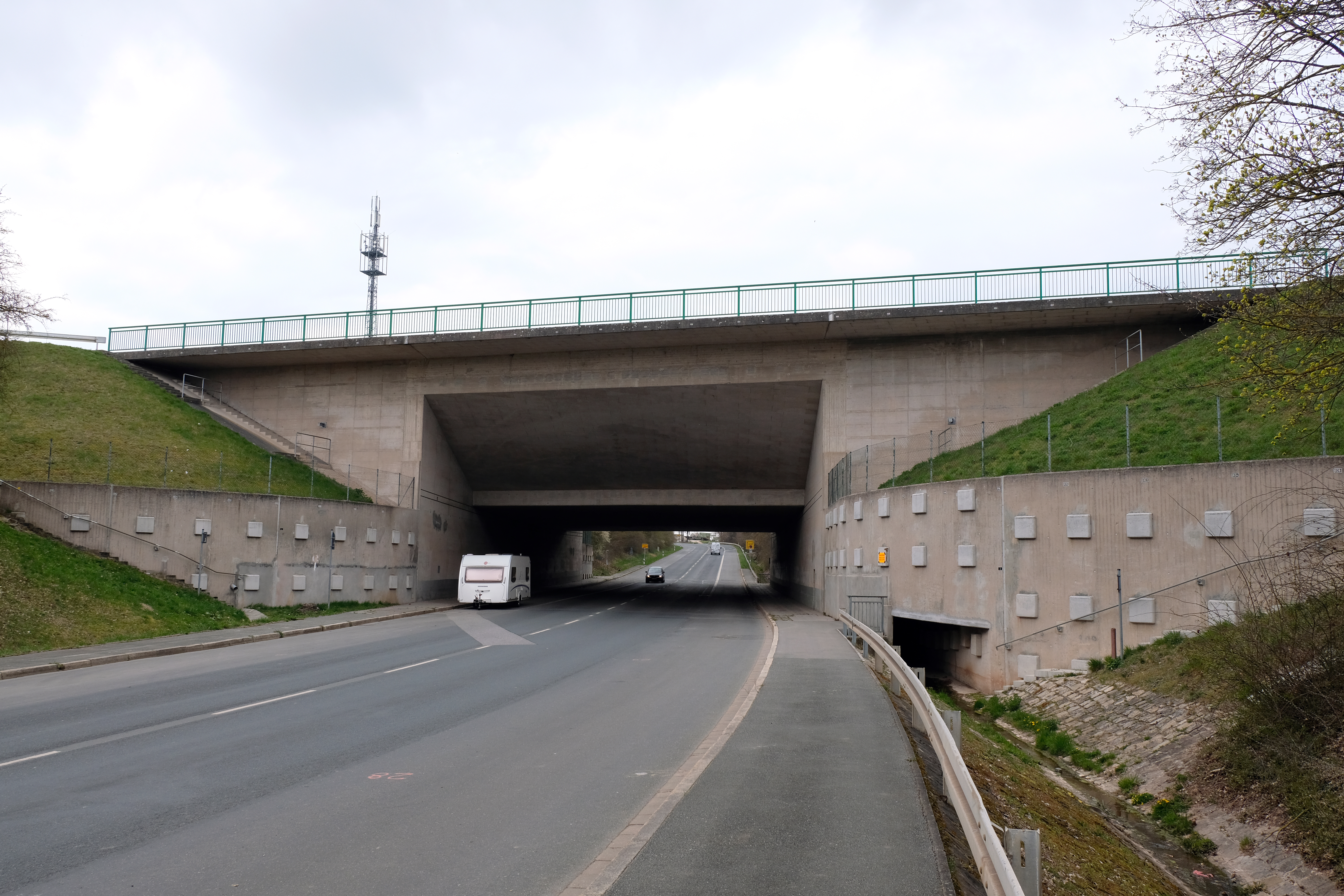 | Beschreibung | Die Kanalbrücke in Vach über die Herzogenauracher Straße - rechts im Bild der Lohgraben, April 2020 | ||