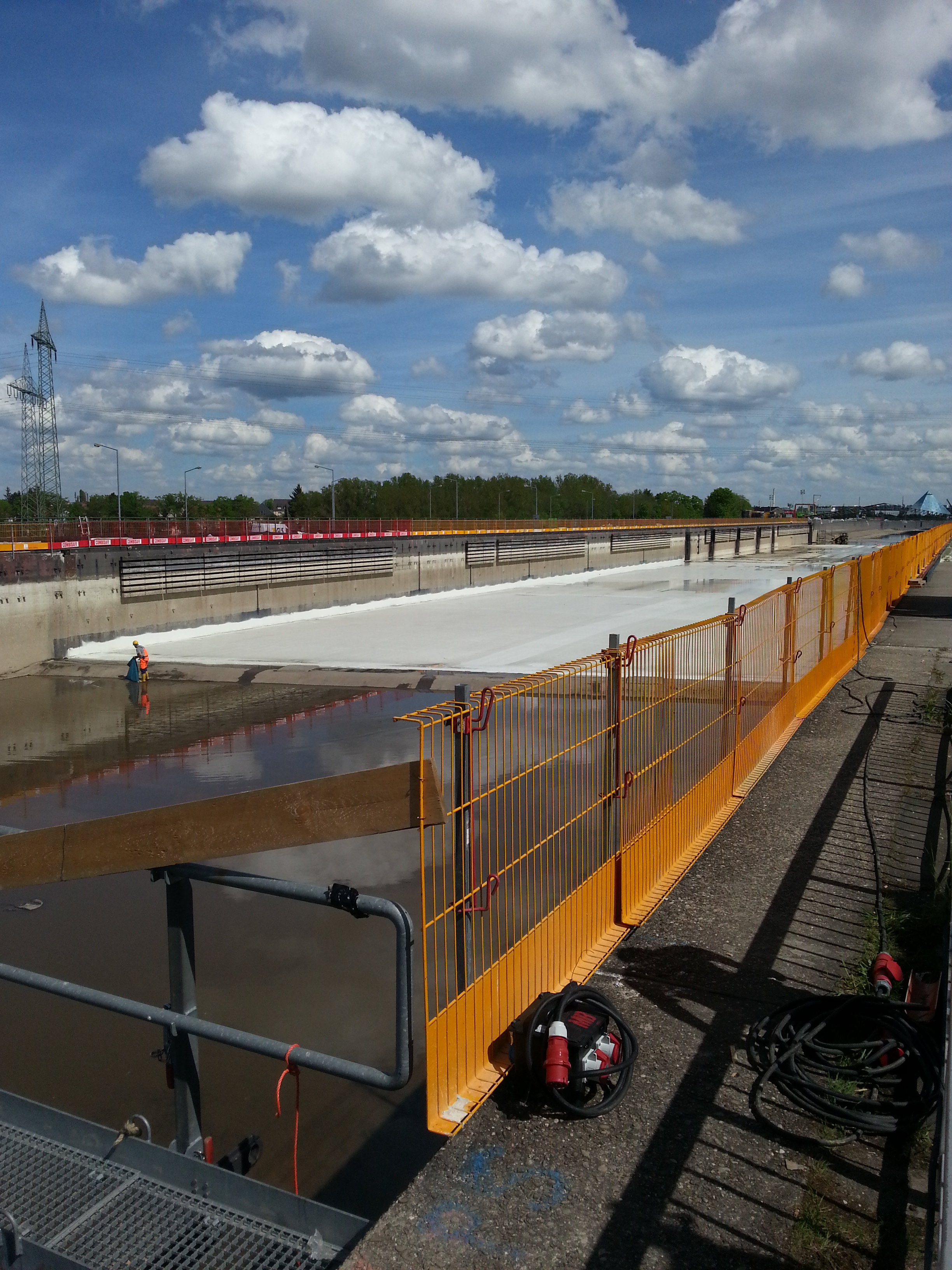 | Beschreibung | Zur Erneuerung des Korrosionsschutzes geleerte Trogbrücke über das Rednitztal (kurz vor Flutung), Mai 2015 | ||