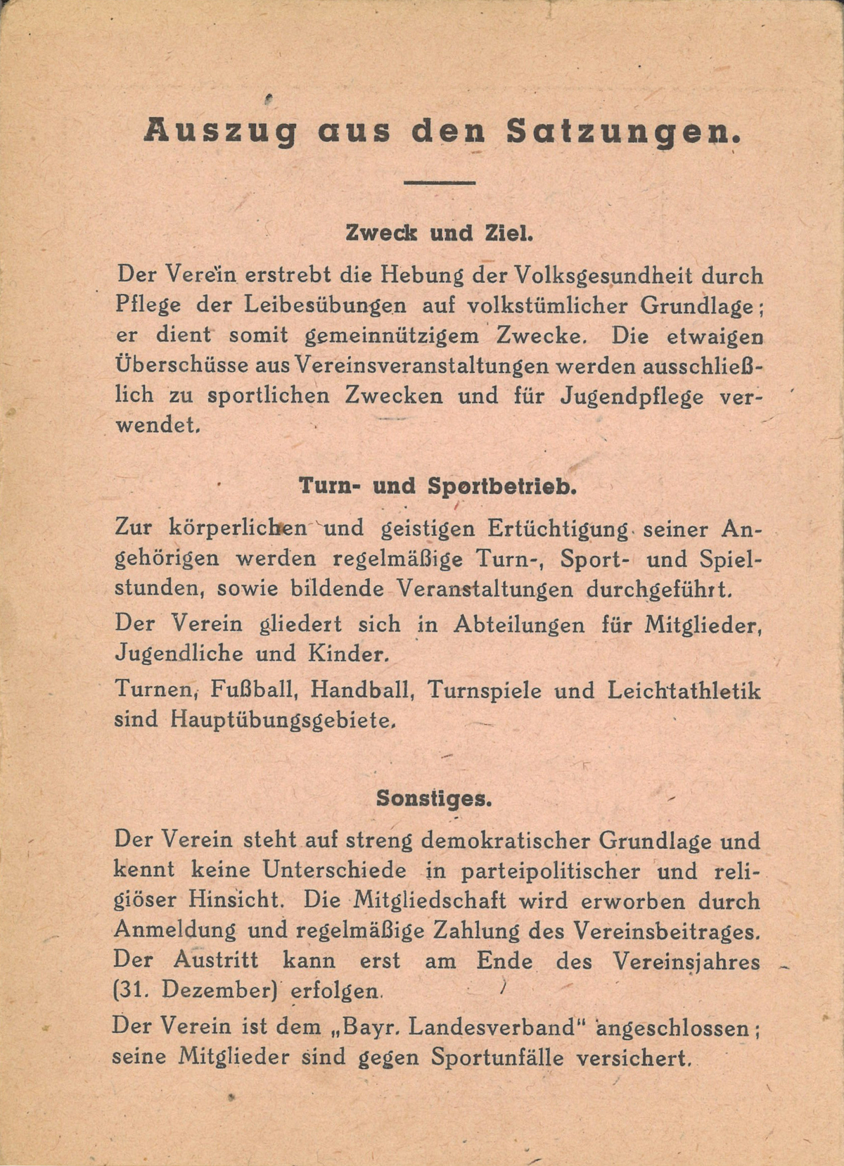 | Beschreibung | Beispiel eines Mitgliedsausweises des Tuspo Fürth von 1953. Auszug aus der Satzung | ||