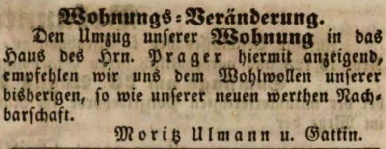 | Beschreibung | Zeitungsanzeige des Moritz Ulmann, August 1845 | ||