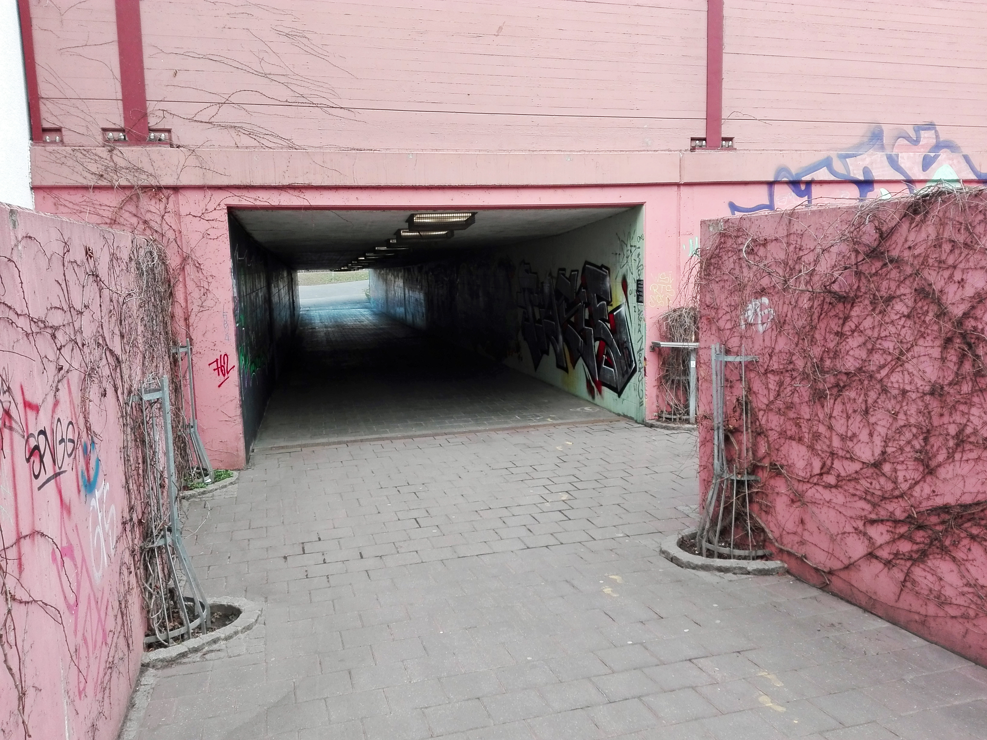| Dateiinfo (Bild-Unterschrift und Info-Box, automatisch erstellt) | Unterführung von der Heiligenstraße zum Schießanger, Blick von der Altstadtseite in den Tunnel, 2021 Urheber: Web Trefoil<br><br>Lizenz: CC BY-SA 3.0 | ||