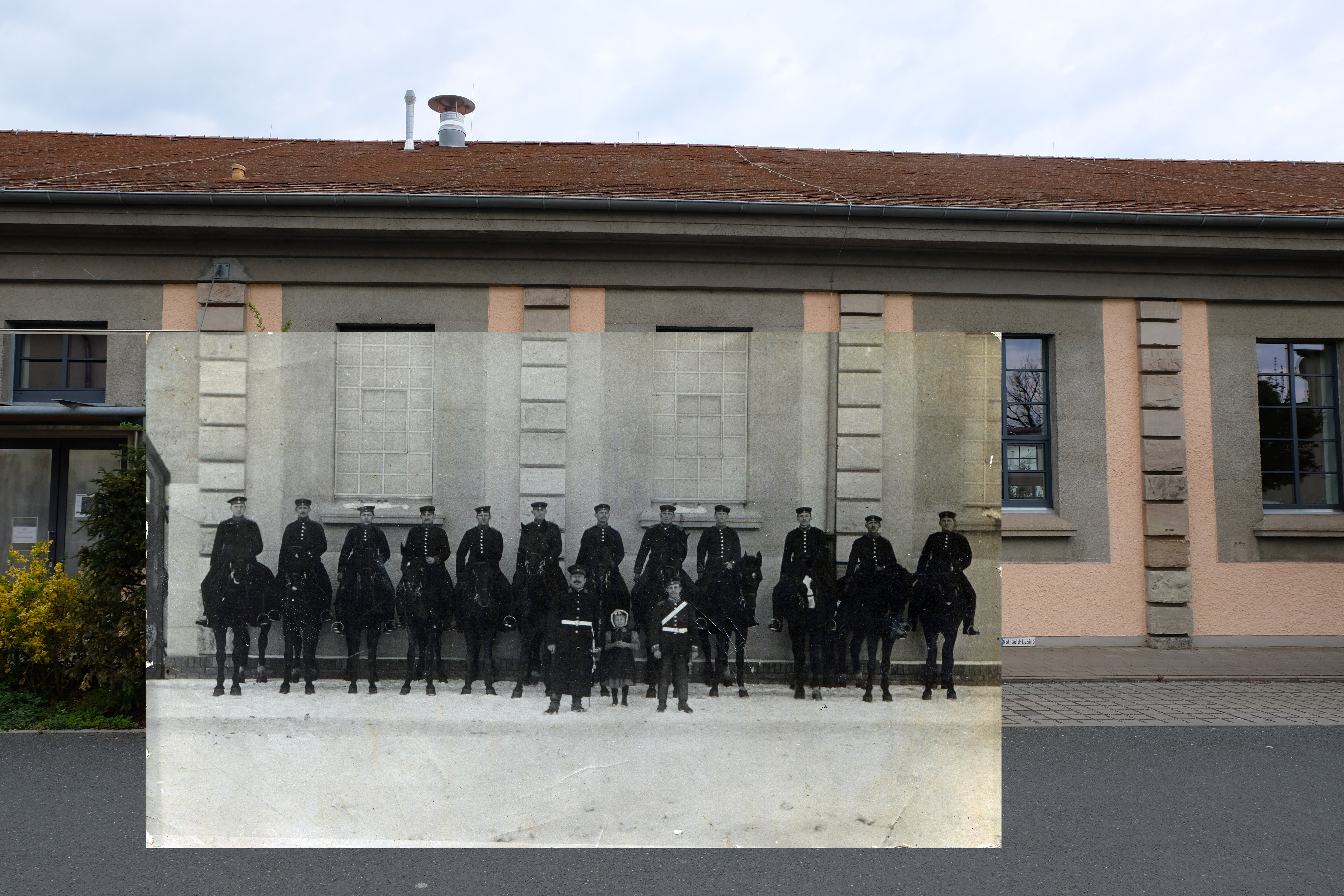 | Beschreibung | Venusweg 7 - Fotomontage mit historischem Bild aus der Zeit der Trainkaserne | ||