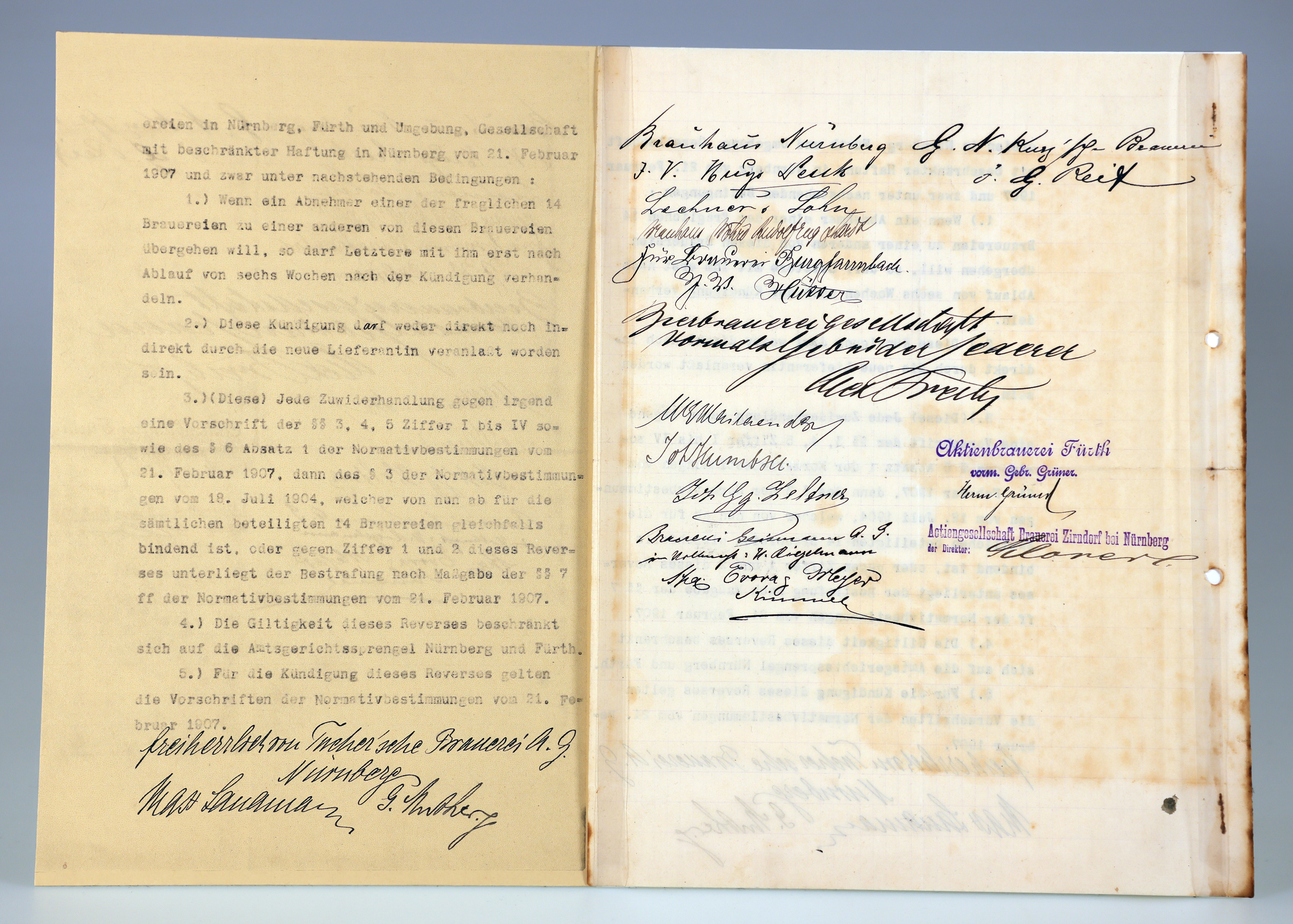 | Beschreibung | Vertragliche Vereinbarung der in Fürth und Nürnberg ansässigen Brauereien über den Wechsel einer Bierabnehmers, Feb. 1907 | ||