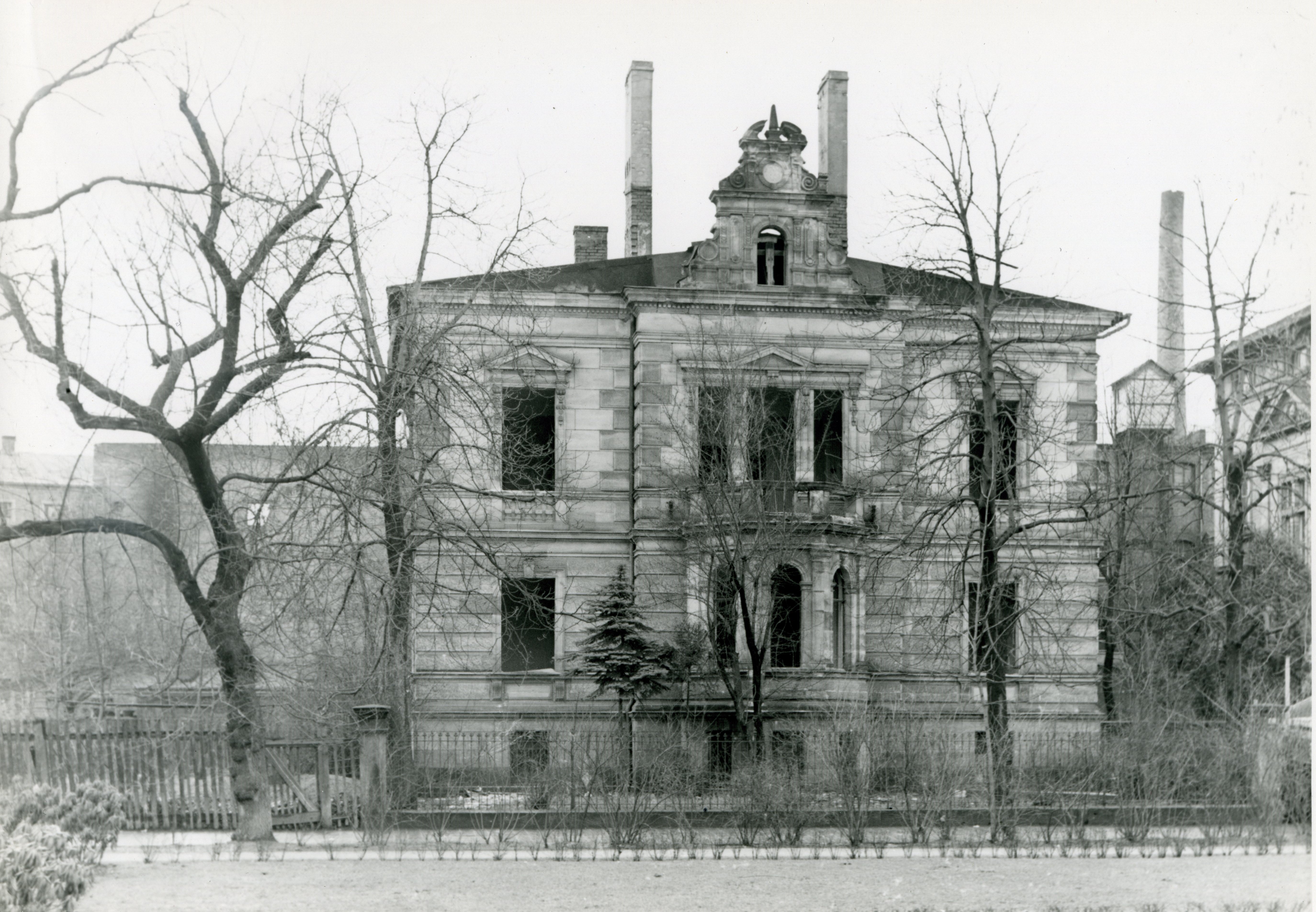 | Beschreibung | „Villa Rosenhaupt“ mit Notdach, ehemals Königswarterstr. 28, Aufnahme 1954 kurz vor Abriss wegen Neubau AOK Fürth | ||