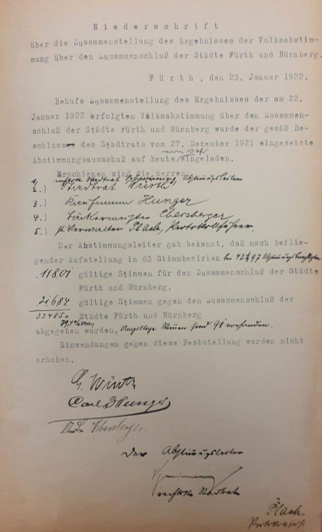 | Quellangaben | „Ergebnis der Volksabstimmung vom 22.1.1922”, Fürth & Nürnberg, zuletzt aufgerufen am 23. April 2024 - online-Digitalisat der Deutschen Digitalen Bibliothek | ||