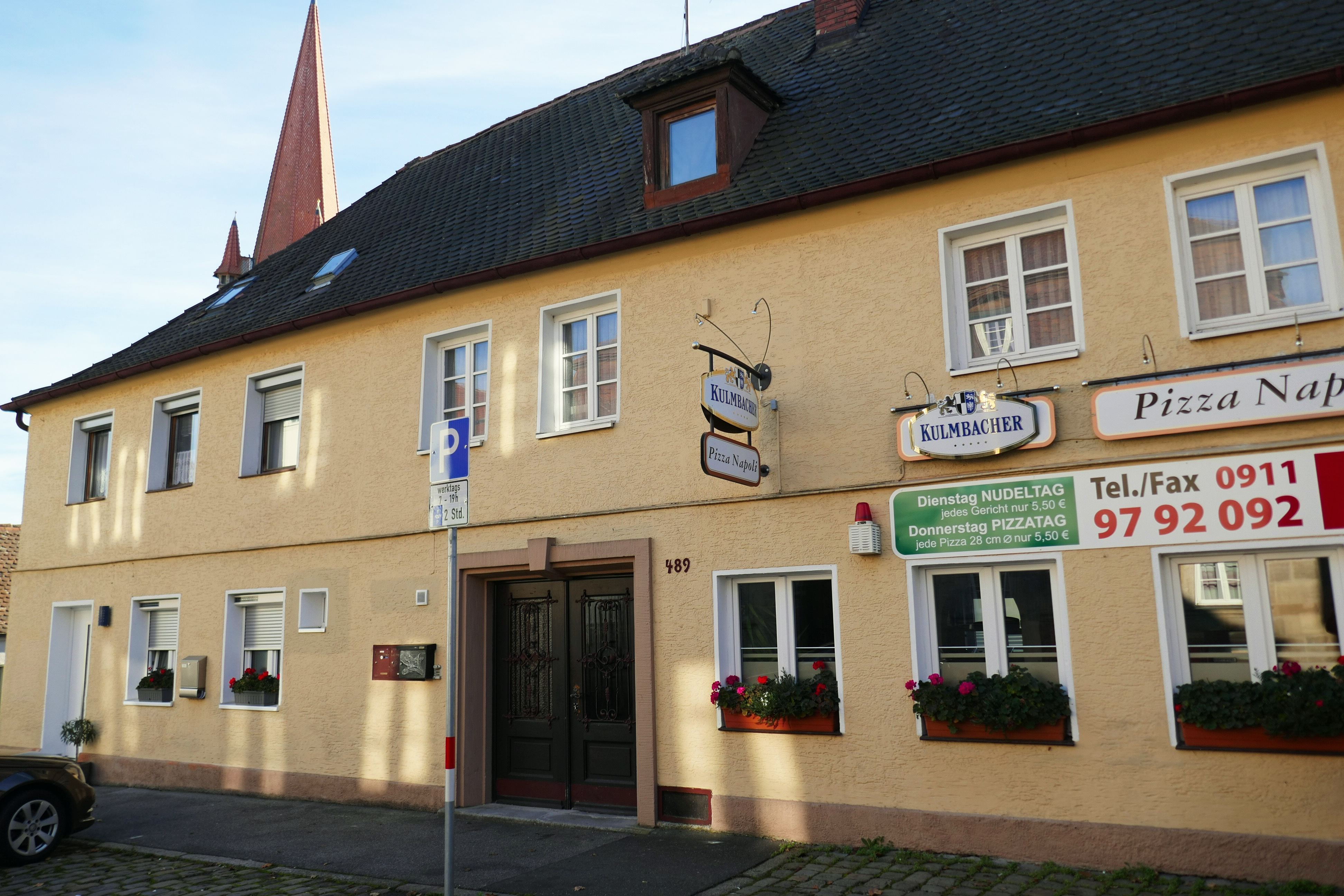 | Beschreibung | Pizza Napoli in der alten Posthalterei in der Würzburger Straße 489 in Burgfarrnbach, November 2020 | ||