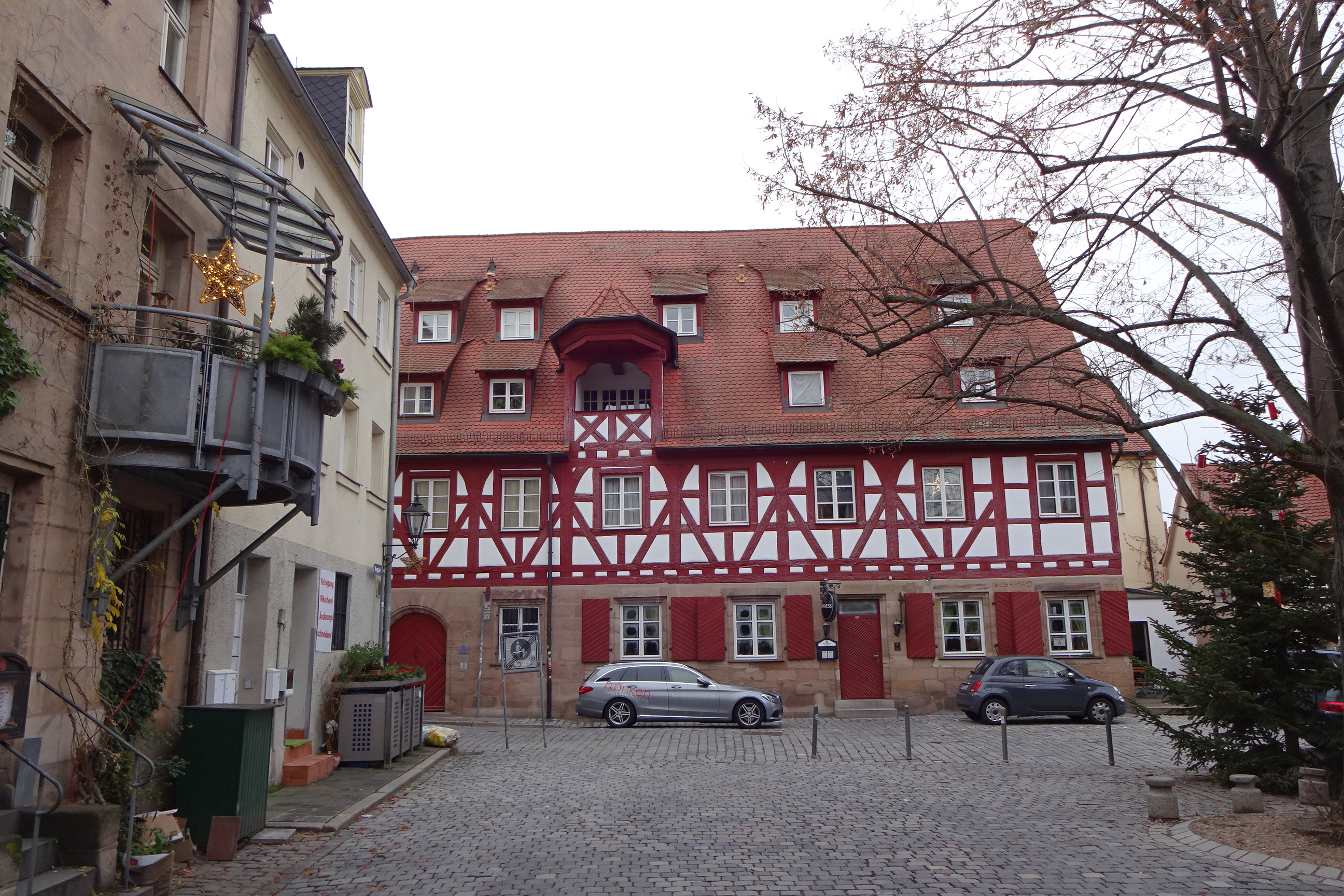 | Beschreibung | am Waagplatz im Hintergrund die Gaststätte Zum roten Roß im Dez. 2019 | ||