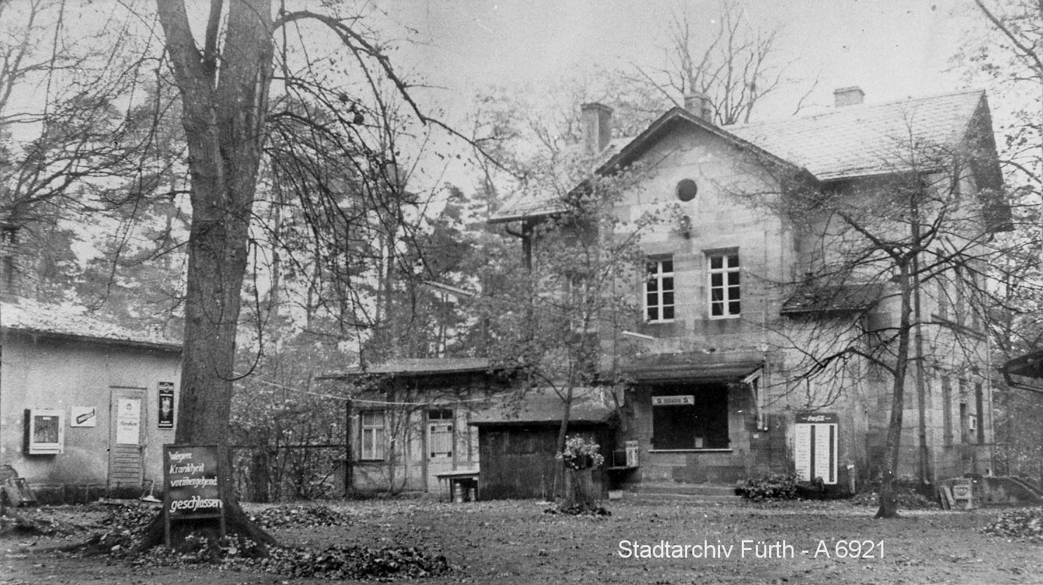 | Beschreibung | Ansicht des ehemaligen Waldrestaurant Forsthaus im Stadtwald, ca. 1970 | ||